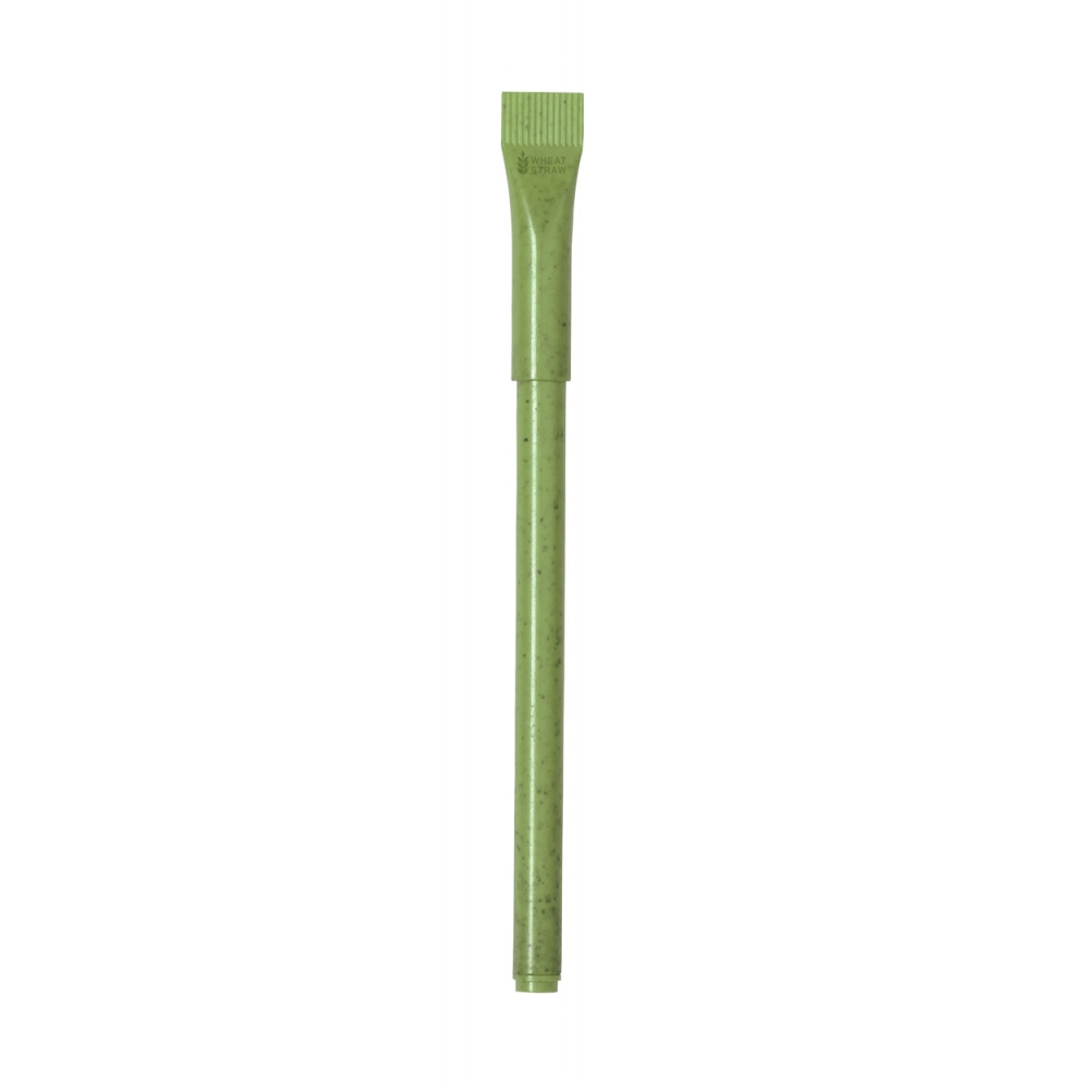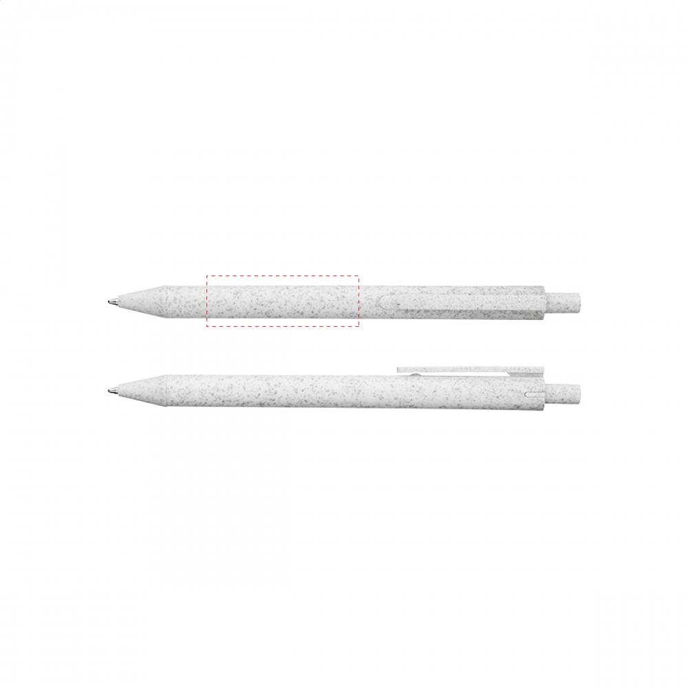 Blauschreibender Kugelschreiber, hergestellt aus 50% PP und 50% Weizenstroh. Griff, Clip und Druckknopf sind aus demselben Material gefertigt und der gesamte Kugelschreiber ist stilvoll in einer Farbe ausgeführt. Teilweise biologisch abbaubar.
