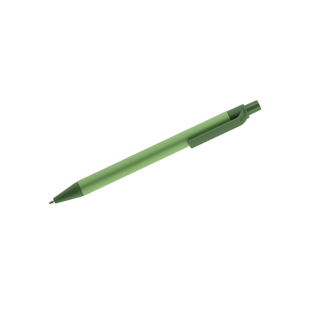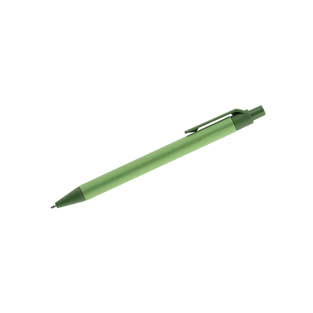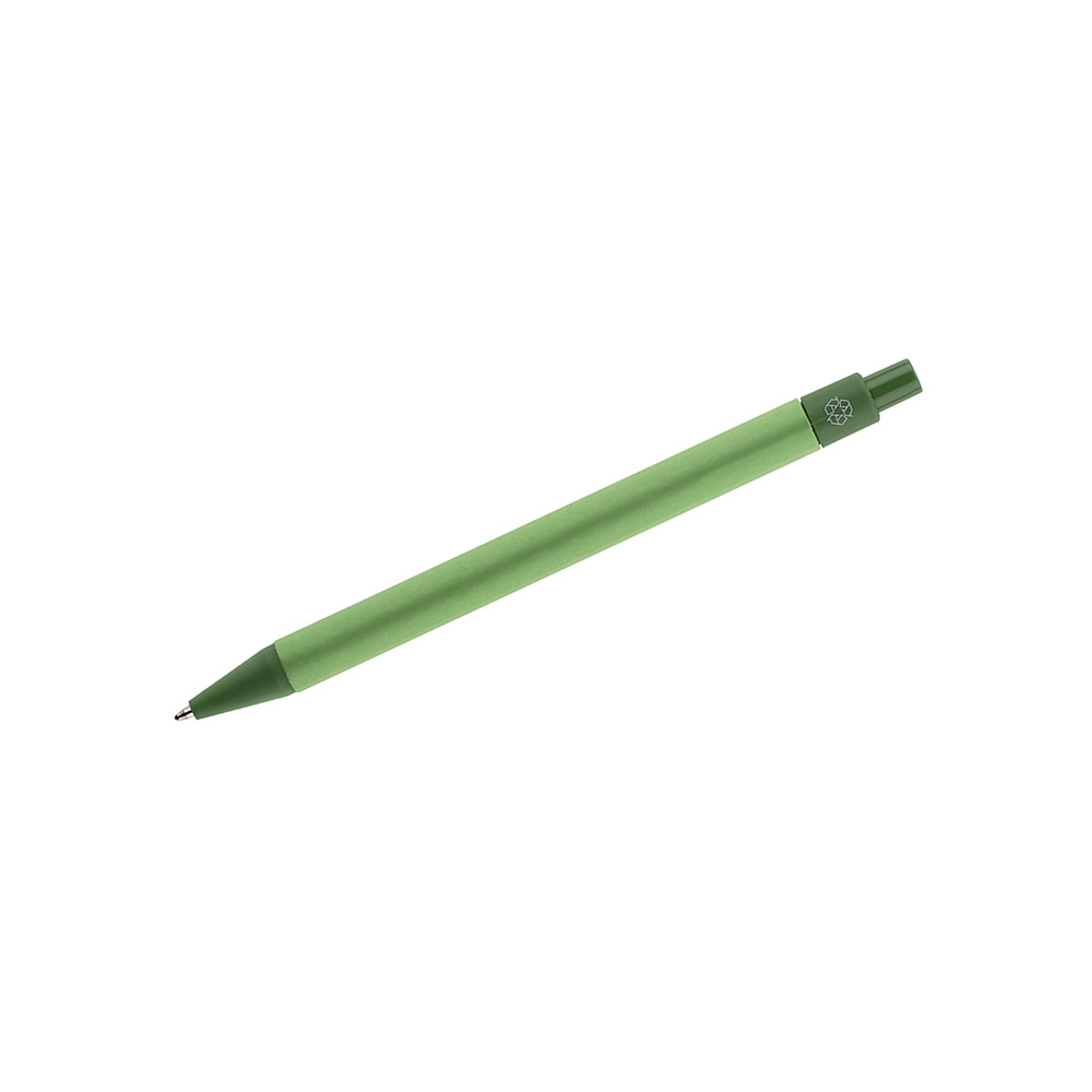 Kugelschreiber mit Druckknopfmechanismus. Kombination aus recyceltem Papierfass in Naturfarbe und Metallbeschlägen. Erhältlich in einer breiten Farbpalette, mit blauer Tinte