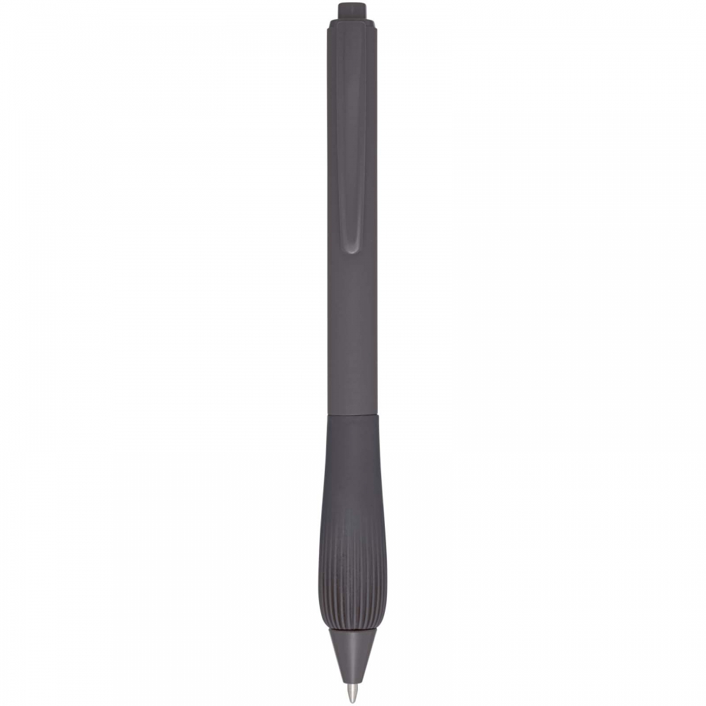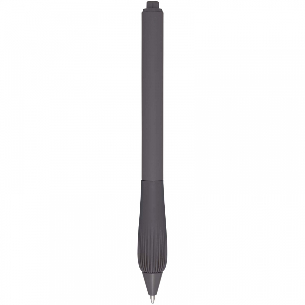 Kugelschreiber aus recyceltem Kunststoff mit gummiertem Schaft und Griff aus TPR. Tintenfarbe: Schwarz. Schreiblänge: 1000 Meter. Strichstärke: 1,0 mm.
