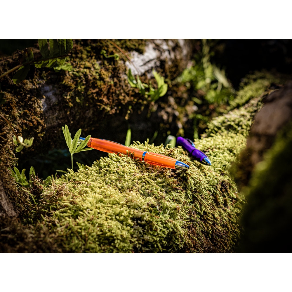 Transparenter Kugelschreiber mit Metallteilen. Stellen Sie sich Ihren eigenen Kugelschreiber zusammen und wählen Sie die Schreibfarbe. Ausgestattet mit einer X20-Mine für 2,5km Schreibleistung.