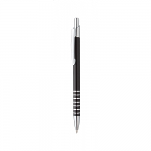 Kugelschreiber aus recyceltem Aluminium. Mit Druckmechanismus, Zubehör in schwarzer Farbe und silbernen Ringen. Jumbo-Patrone und blaue Tinte. Merkmal von recyceltem Aluminium auf der Oberseite. Recyceltes Aluminium ist ein Material mit fast unendlichen Recyclingmöglichkeiten, ohne seine ursprünglichen Eigenschaften zu verlieren und dabei weniger Energie in diesem Prozess zu verbrauchen. GRS-Zertifizierung (Global Recycled Standard), die den recycelten Ursprung des verwendeten Materials zur Herstellung des Produkts gewährleistet.