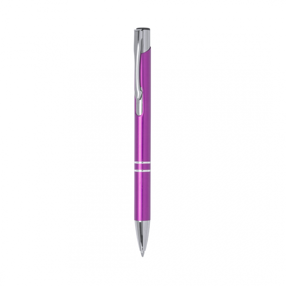 Origineller Kugelschreiber mit Druckknopfmechanismus in elegantem zweifarbigen Design. Gestanzter Aluminiumschaft mit glatter Oberfläche in verschiedenen Farben. Origineller Clip, Ringe und Spitze in Silber. Mit Jumbo-Mine und blauer Tinte.