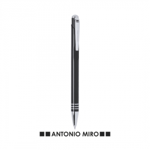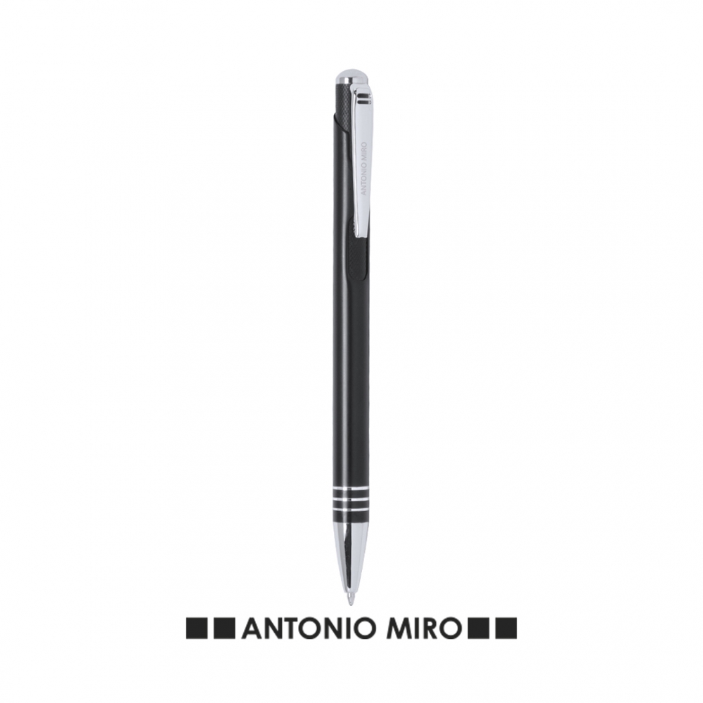 Druck-Kugelschreiber von Antonio Miró mit elegantem Design und geschmeidigem Aluminiumschaft mit silbernen Kontrastdetails. Mit originellem Metallclip und oberem Ende sowie Stanzung aus Karbon. Präsentiert in einem individuellen Aluminium-Case in Schwarz mit dem Markenlogo. Blaue Tinte.