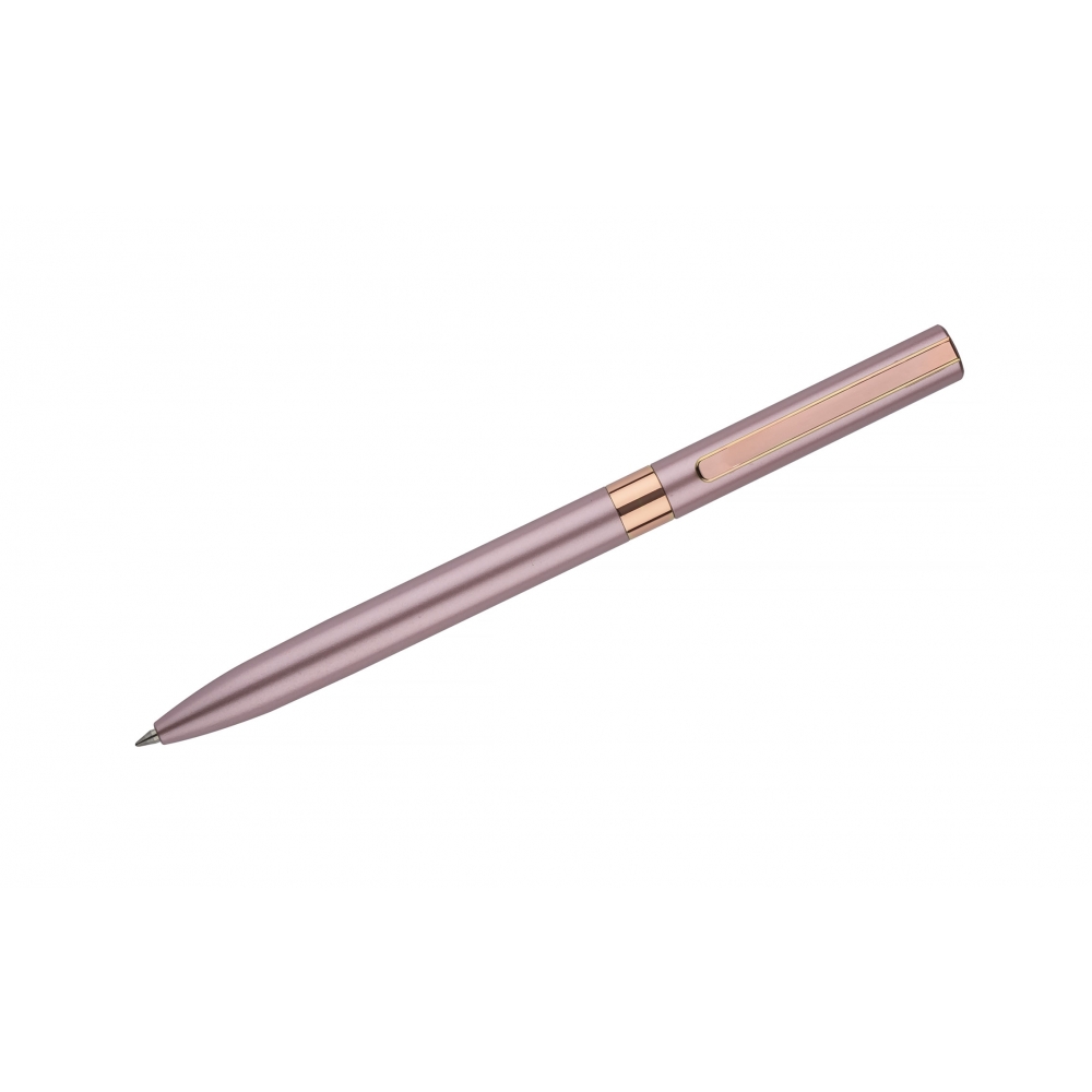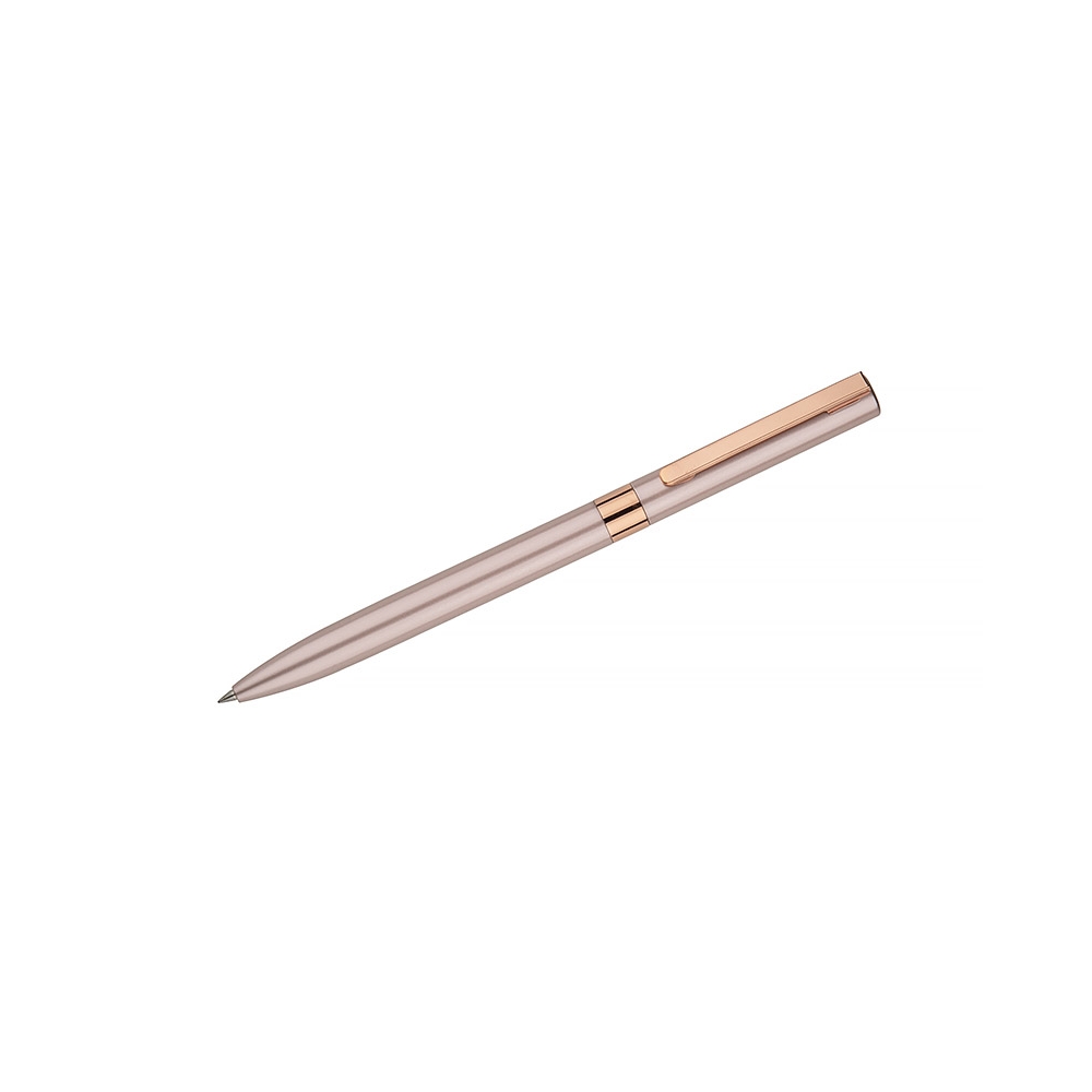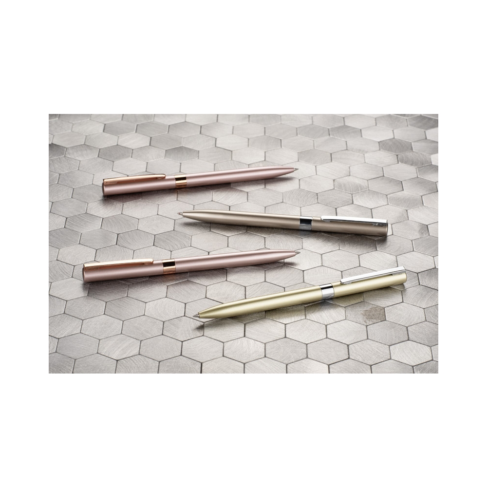 Der Nanna Kugelschreiber in Roségold hat einen Schaft aus recyceltem Aluminium und einen Stylus aus Silikon. Recyceltes Aluminium reduziert die Menge an Deponiemüll, schont die natürlichen Ressourcen und reduziert die Treibhausgasemissionen. Tintenfarbe: Schwarz. Schreiblänge: 800 Meter. Schreibspitze: 1 mm.