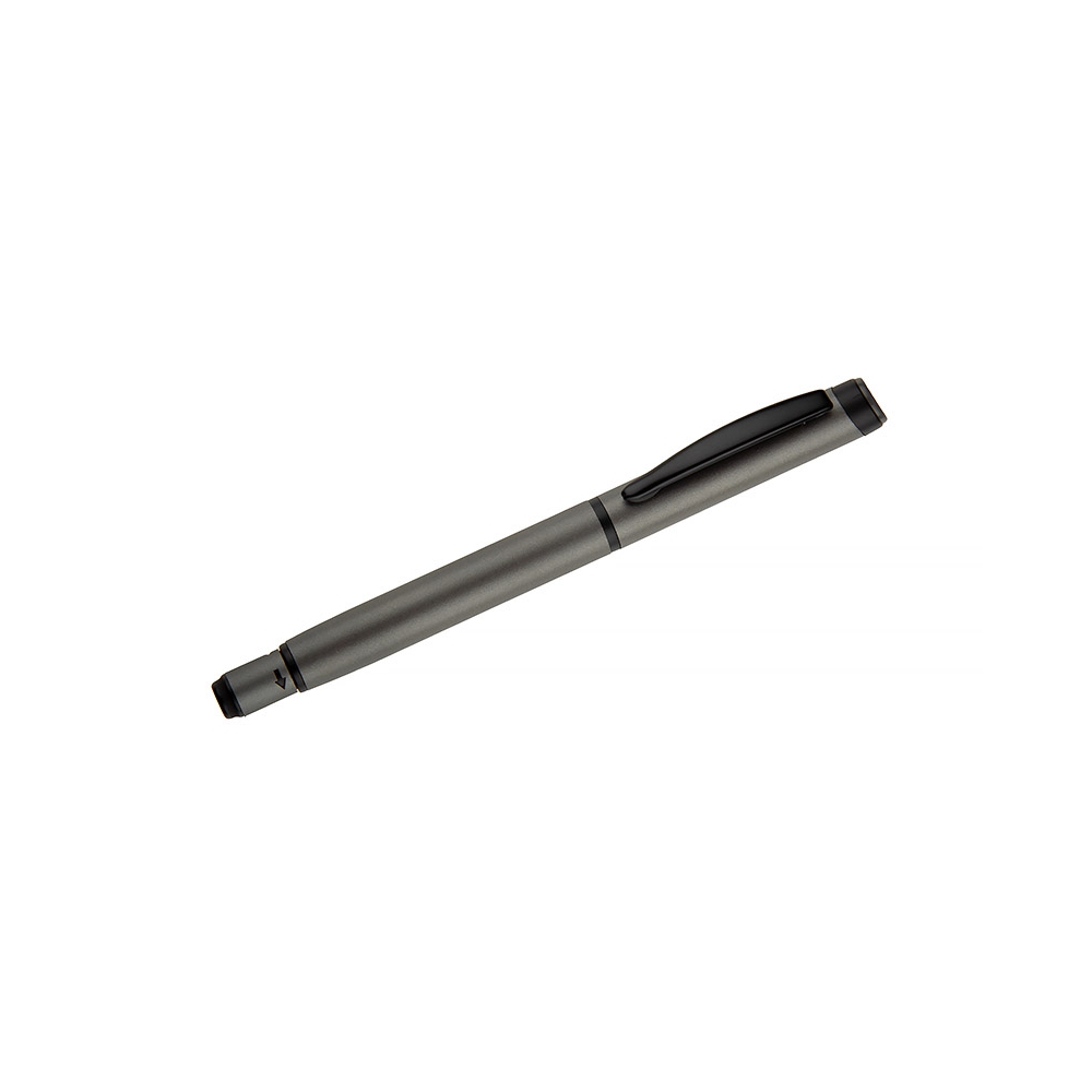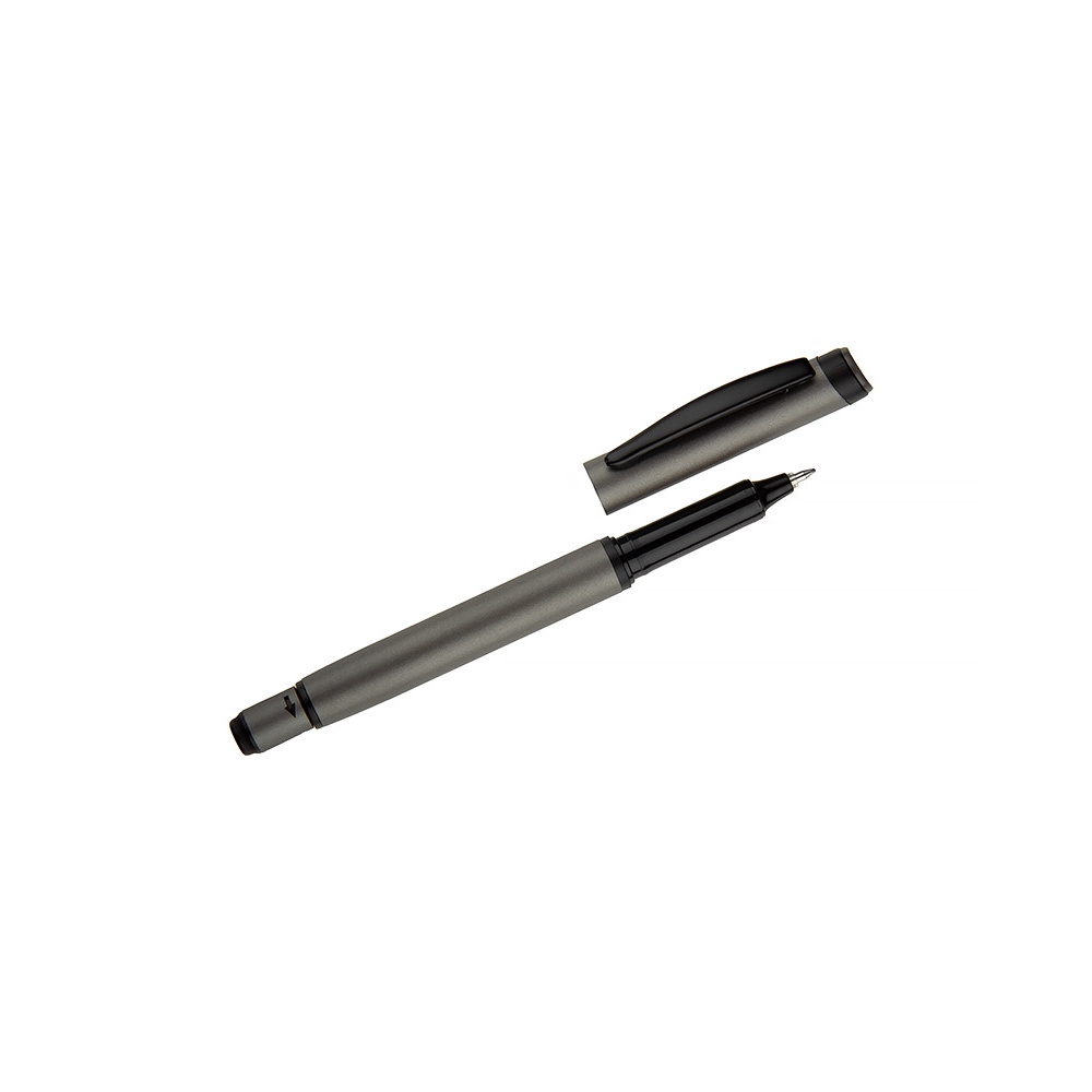 Der Kugelschreiber ROTIS ist ein Aluminiummodell mit kostenloser Gelmine, das mit einer klassischen Kappe verschlossen wird. Der seidenmatt lackierte Schaft wird durch einen schwarzen Metallclip ergänzt, der einen eleganten Akzent setzt. Die drehbare Spitze mit integriertem Spinner dient als Anti-Stress-Funktion - der schwarze, ins Material geprägte Pfeil auf der Spitze deutet dezent die Drehrichtung an.