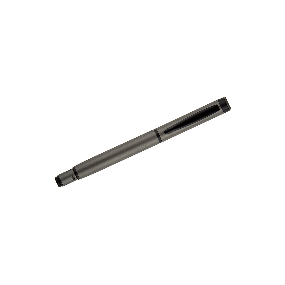 MOOD METAL MD1 M M4 Kugelschreiber Maxema, Metallgehäuse mit Titangrau-Finish, Spitze und Druckknopf, deckende Clip mit glänzender Oberfläche, blauschreibend. Alle Mood Metal-Modelle werden mit einer einzigen My Box-Hülle aus schwarzem Fedrigoni-Karton geliefert.