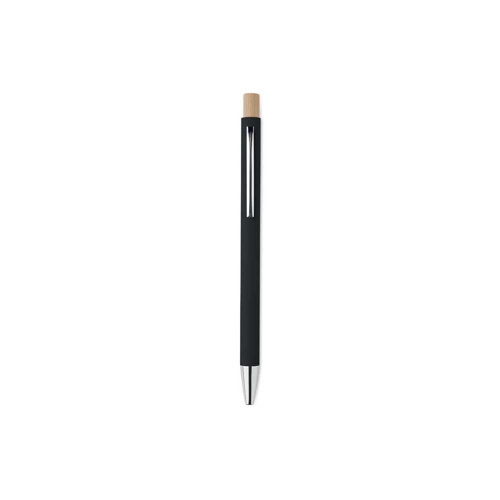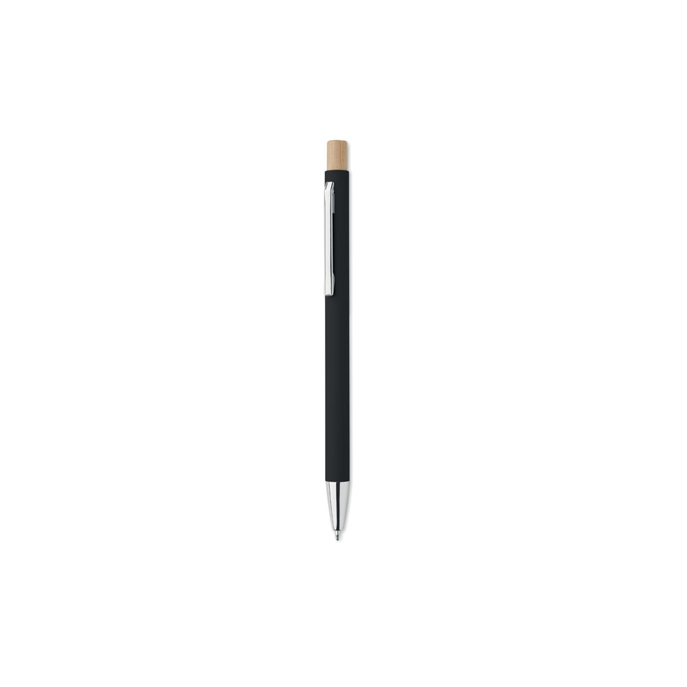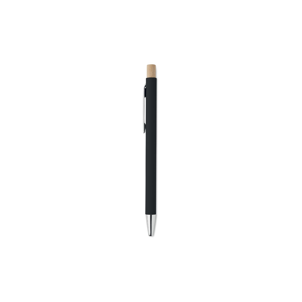 Eleganter Kugelschreiber mit Naturlinie und Druckknopfmechanik. Strapazierfähiger Aluminiumschaft mit gummierter Oberfläche und Korkgriff, mit Schaft in einer breiten Palette von unverwechselbaren Farben. Metallclip mit einziehbarem Druckknopf und blauer Tinte. Präsentiert in einem individuellen, recycelten Beutel. Hergestellt aus pflanzlichen Bestandteilen, um die Verwendung natürlicher Rohstoffe zu fördern und Schadstoffemissionen zu reduzieren.
