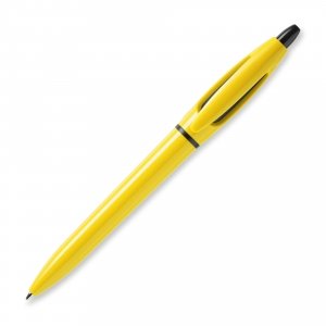 Der Hardcolour Kugelschreiber S! Extra besitzt einen farbigen Schaft, Drücker und Clip sowie einen schwarzen Ring und eine schwarze Spitze. Ausgestattet mit einer blau schreibenden X20-Refill-Mine. Der Schaft wird mit einem Logodruck veredelt. Der Kugelschreiber besteht aus ABS und wird in Europa hergestellt. Ab einer Abnahmemenge von 5.000 Stück sind eigene Farbkombinationen möglich.