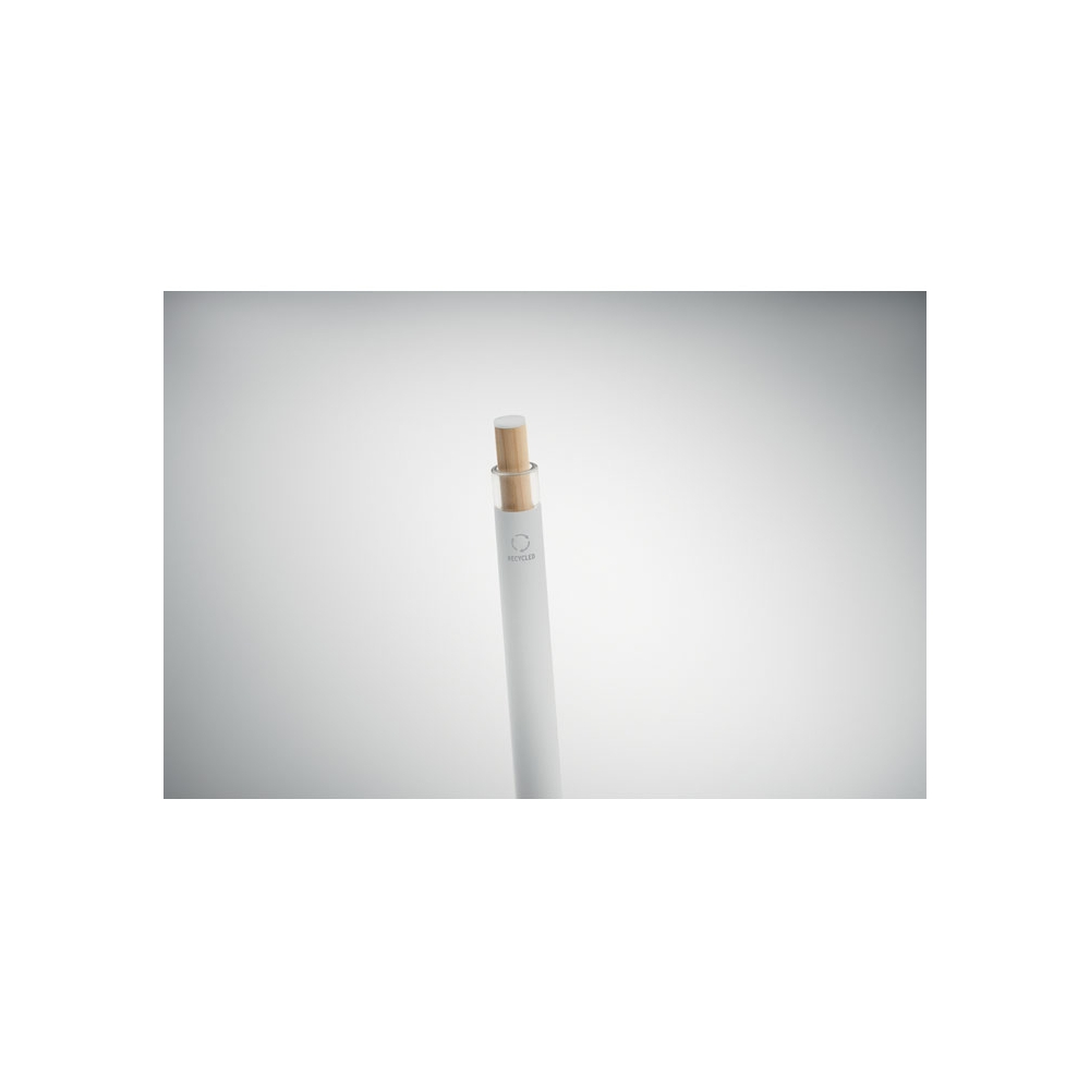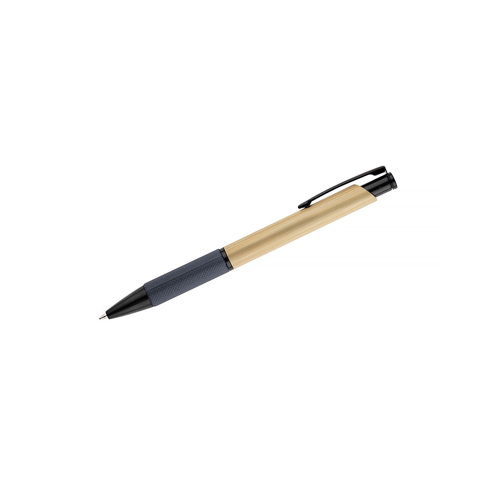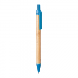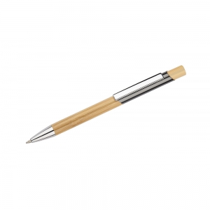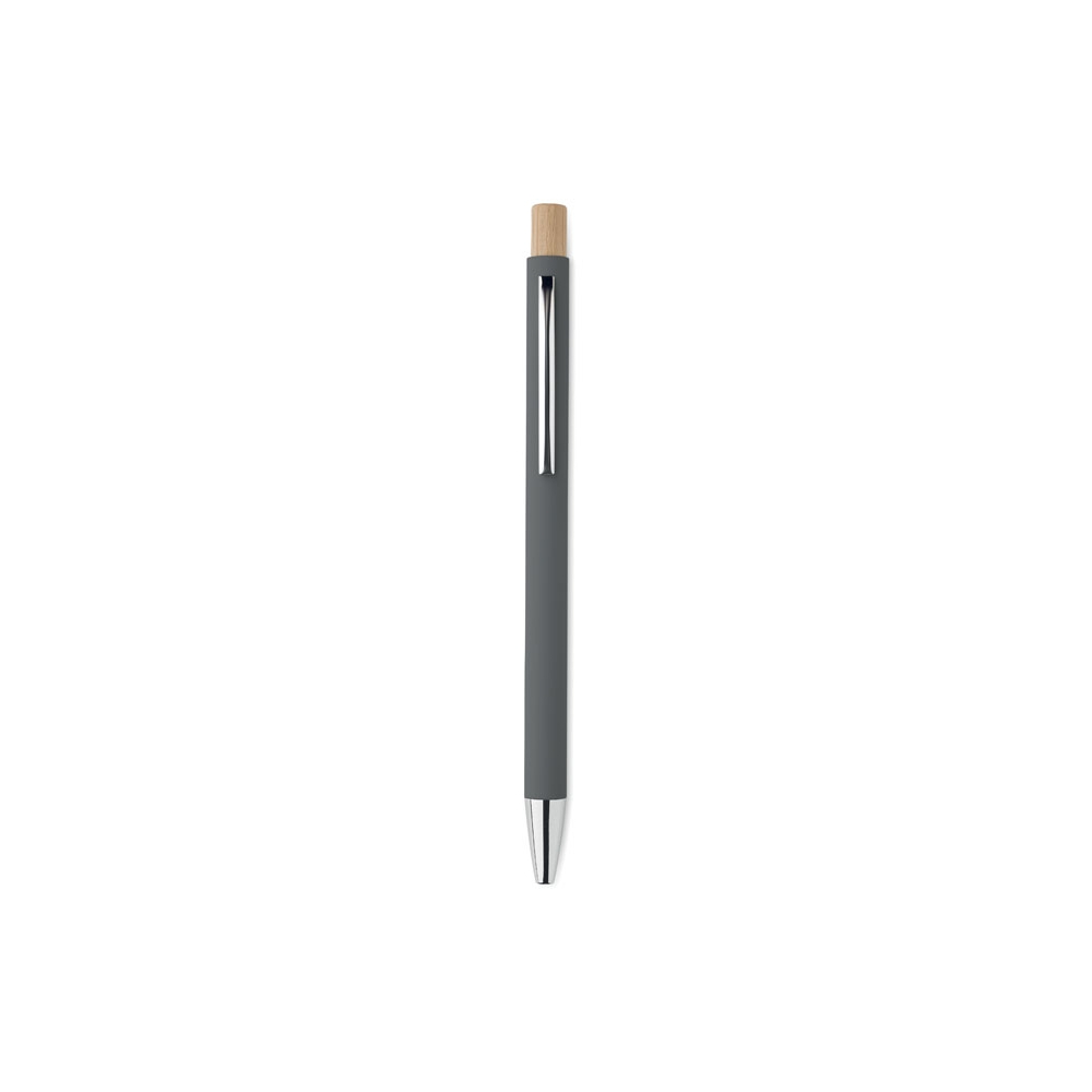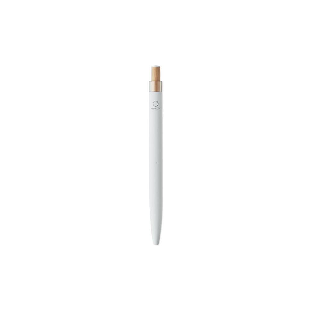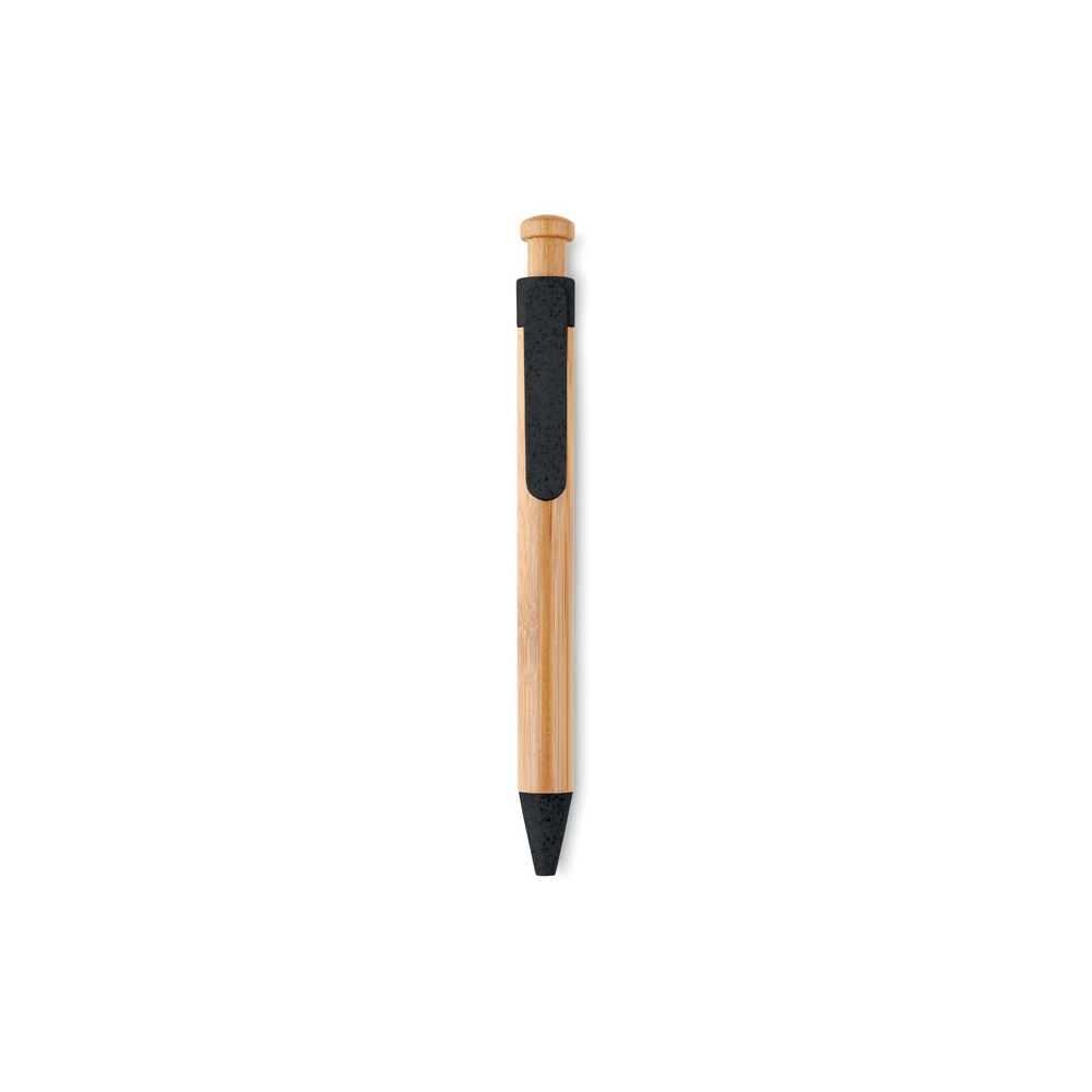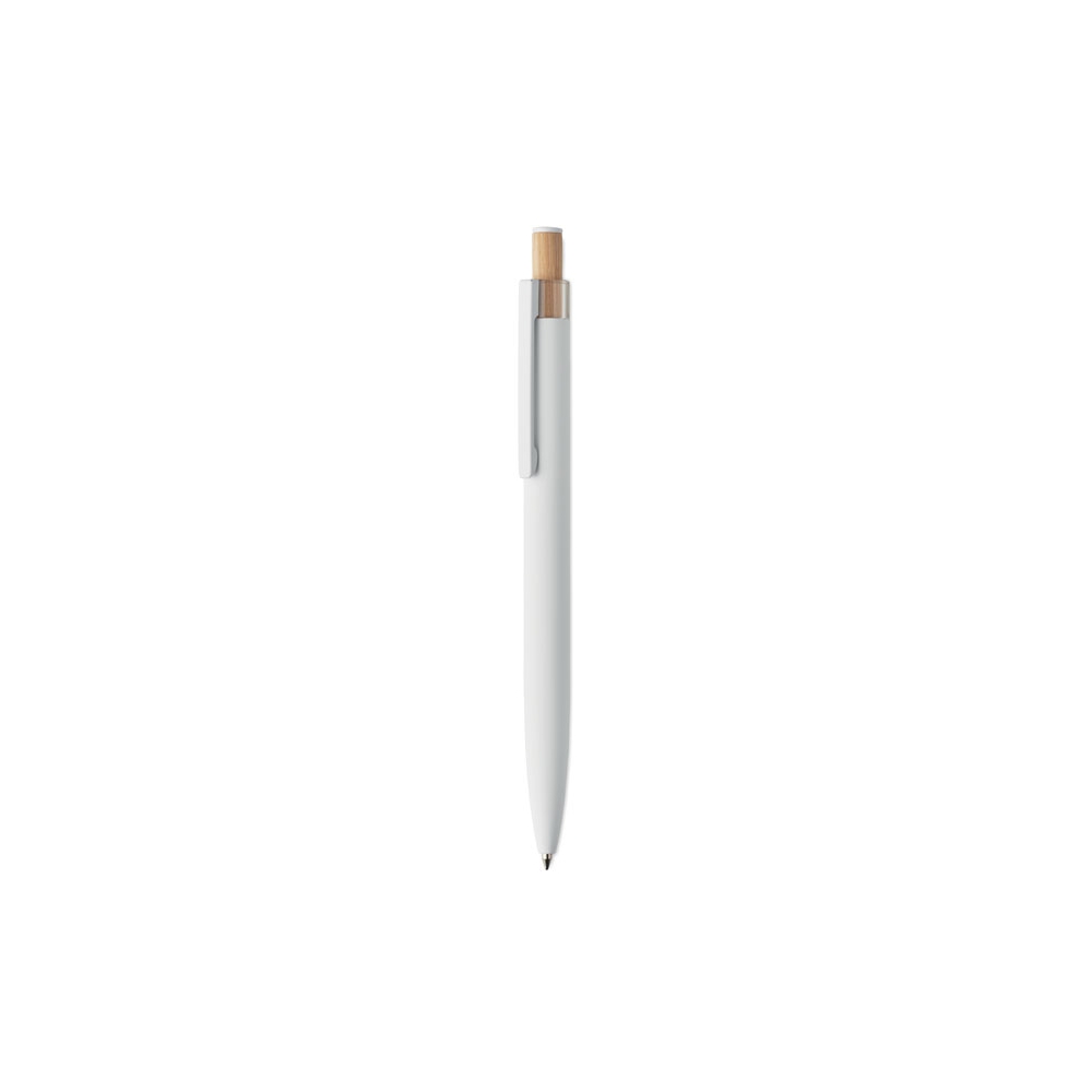 Artikel-Nr: MCM1524507Kugelschreiber aus recyceltem Aluminium mit schwarzem Metallclip, blau schreibender Mine, Bambusdrücker und 6-fach wechselndem Bambusfenster auf Höhe des Clips. Ihre Werbung gravieren wir neben dem Clip (Gravur auf die Bambusfläche auf Anfrage möglich).
