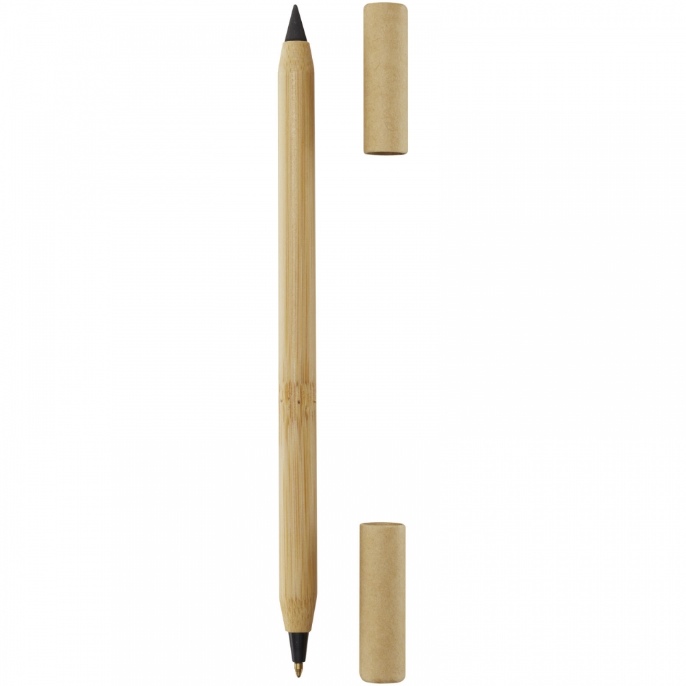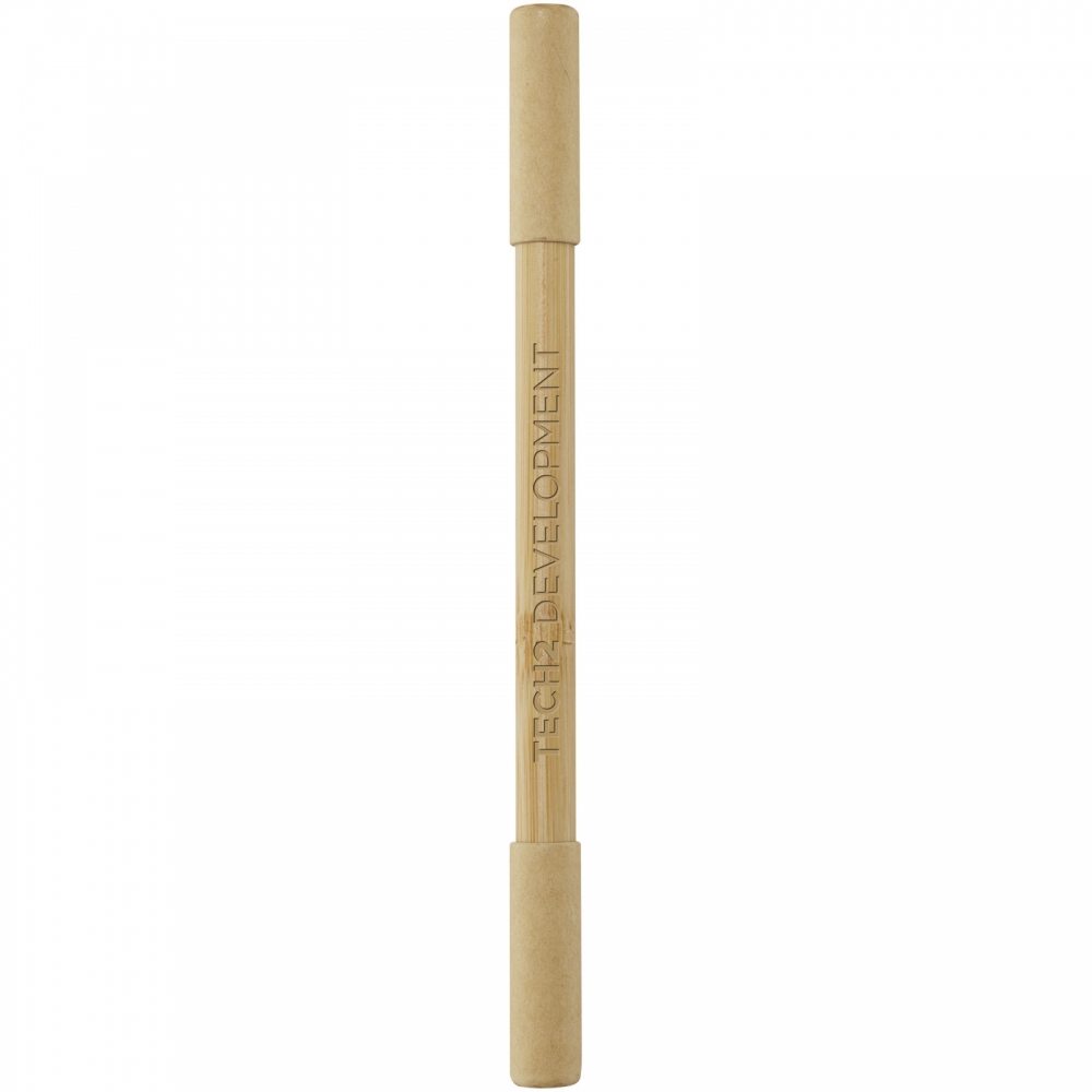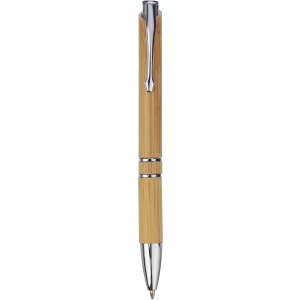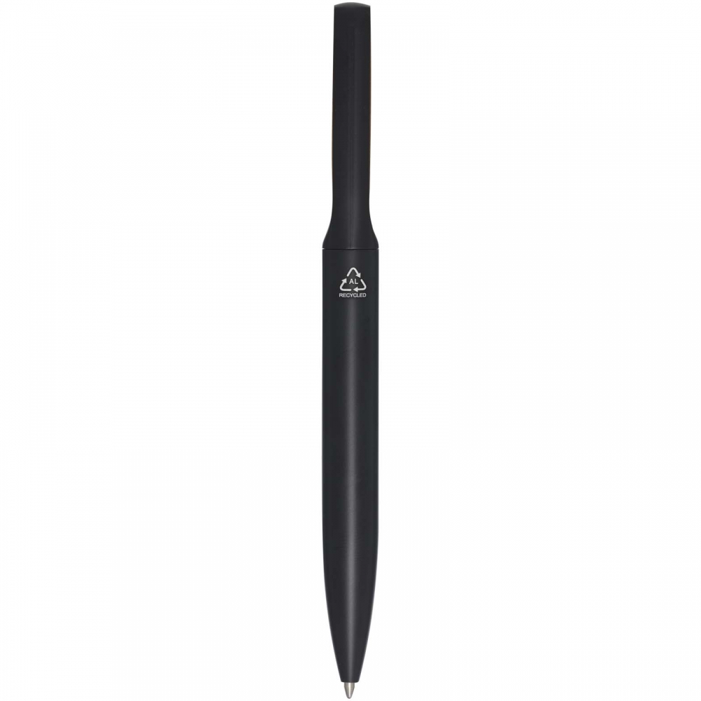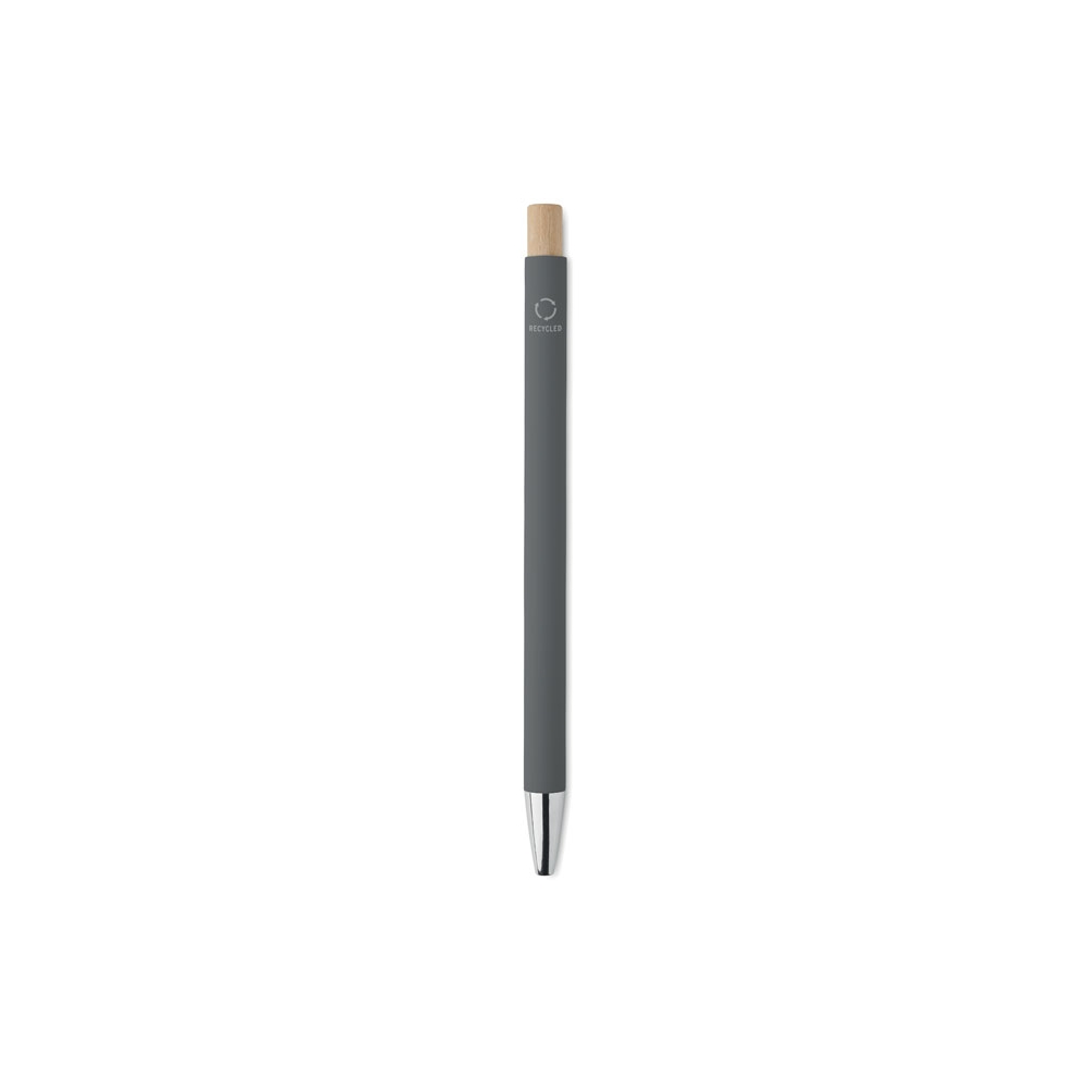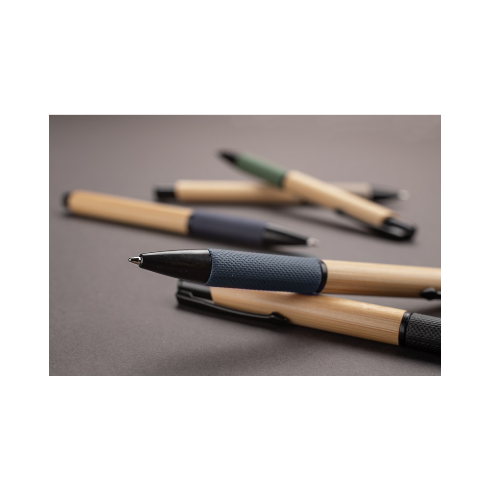 Artikel-Nr: MCM1524507Kugelschreiber aus recyceltem Aluminium mit schwarzem Metallclip, blau schreibender Mine, Bambusdrücker und 6-fach wechselndem Bambusfenster auf Höhe des Clips. Ihre Werbung gravieren wir neben dem Clip (Gravur auf die Bambusfläche auf Anfrage möglich).