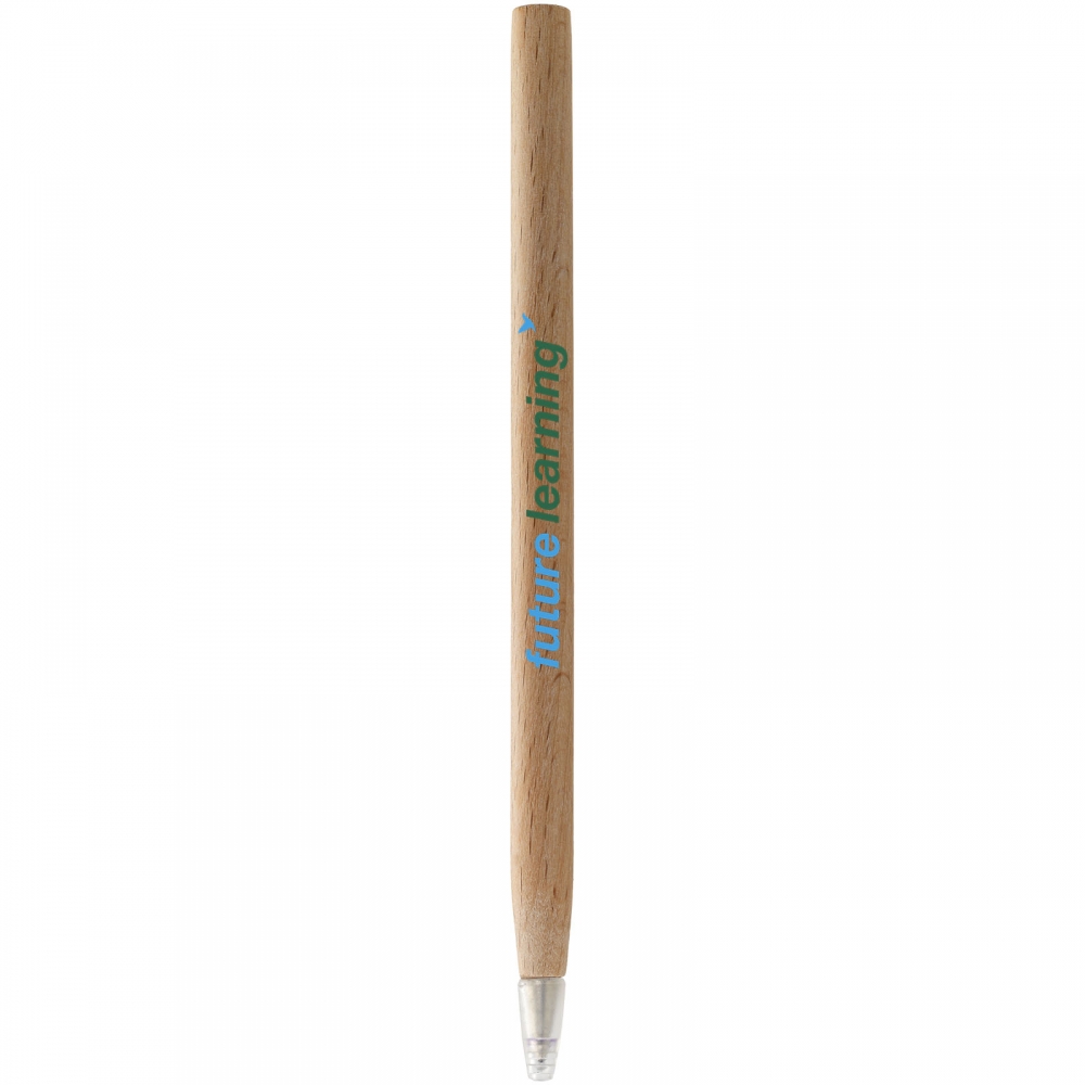 Artikel-Nr: EAG129101TOP PRICE! Handlicher, schwarzschreibender Kugelschreiber aus Buchenholz mit schwarzer Kappe. Ihre Werbung wird auf den Stift gedruckt.