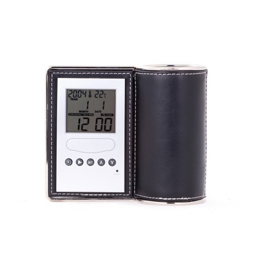 Multifunktionskugelschreiber aus Metall mit blauschreibender Mine und Clip. Dieser Kugelschreiber besteht aus einer Minitaschenlampe mit LED Licht, einem Laserpointer und hat eine Touchpen-Funktion. Geliefert in einem Geschenketui aus Metall. Enthält 3 LR41-Batterien. ø10 x 125 mm | Schachtel: 178 x 38 x 19 mm