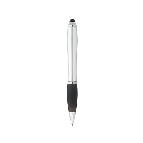 Multifunktions-Kugelschreiber mit schlankem Profil und Stylus am oberen Ende für kapazitive Touchscreen-Geräte. Mattierter, farbiger Schaft, mit glänzenden Elementen ergänzt.