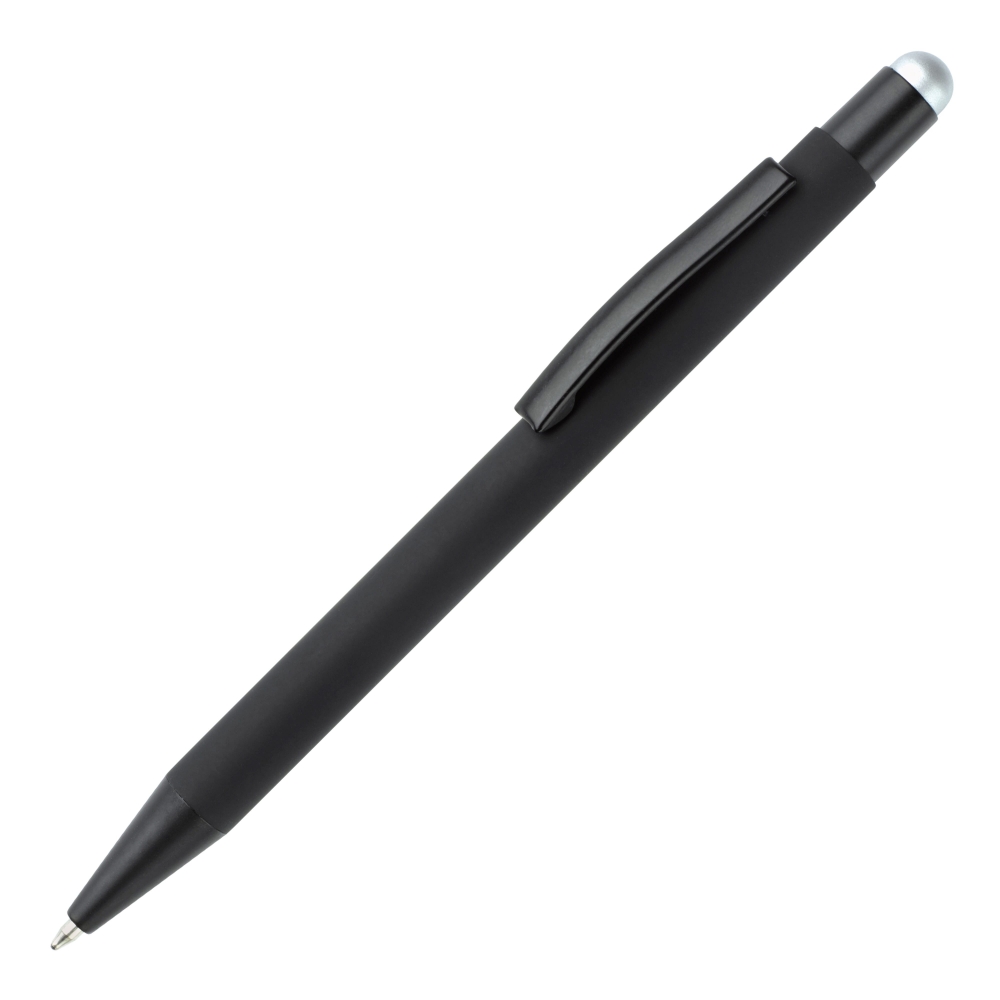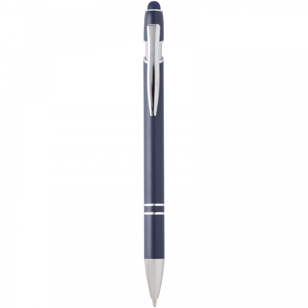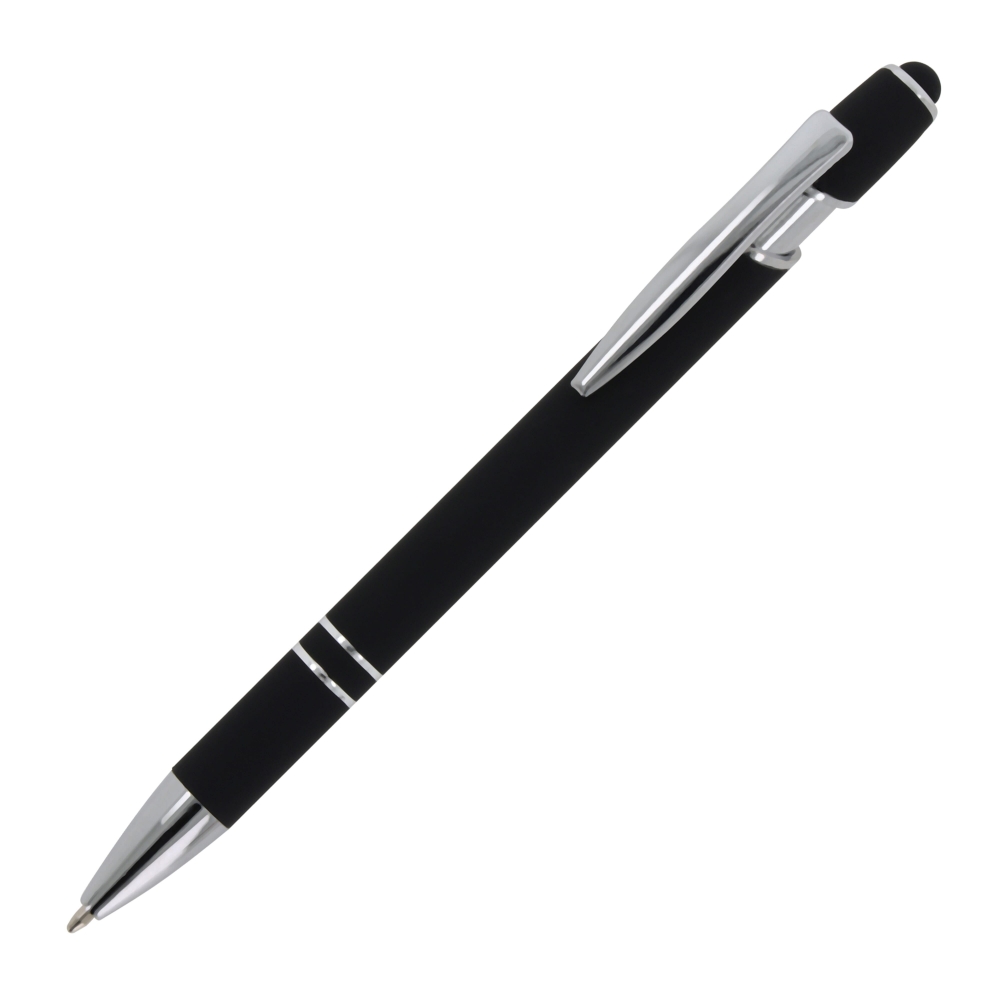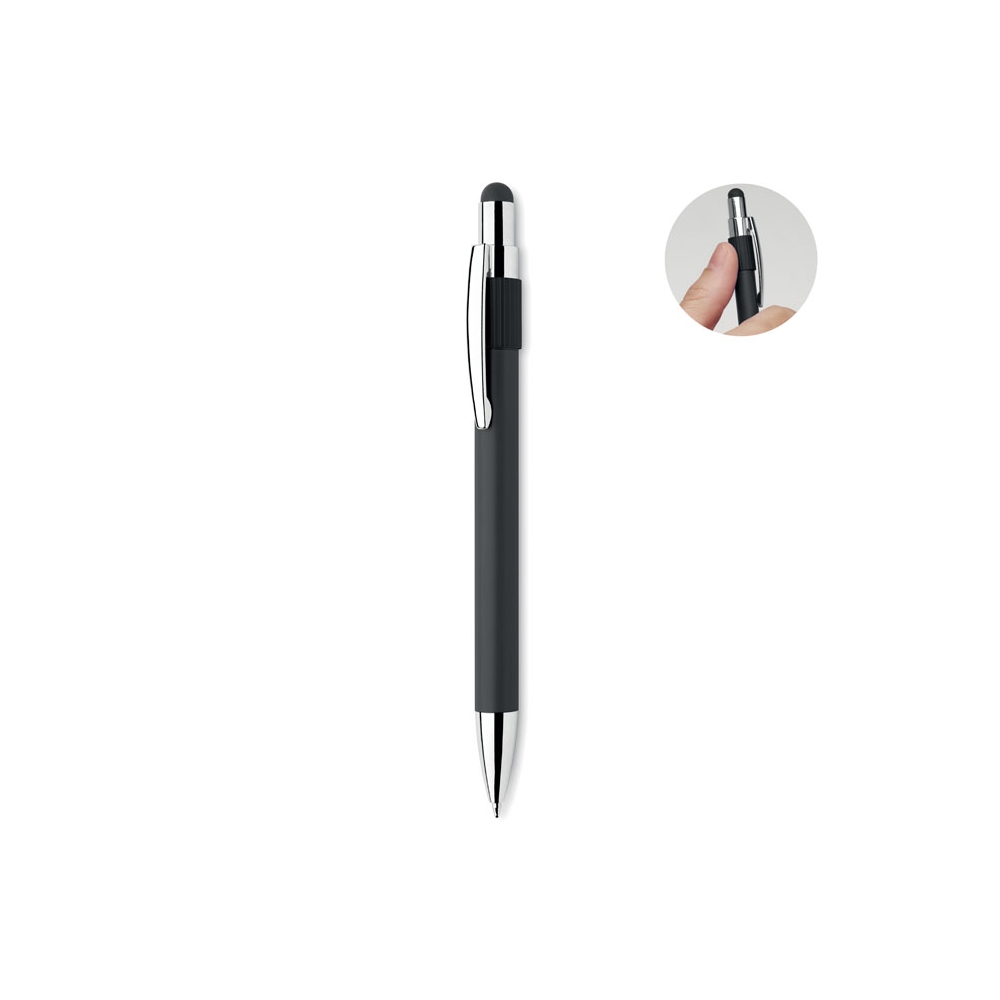 Artikel-Nr: ART87781N0061Kugelschreiber aus Aluminium mit elegantem Soft-Touch-Finish und Stylus. Mit massivem Metallclip. Schreibfarbe: blau.