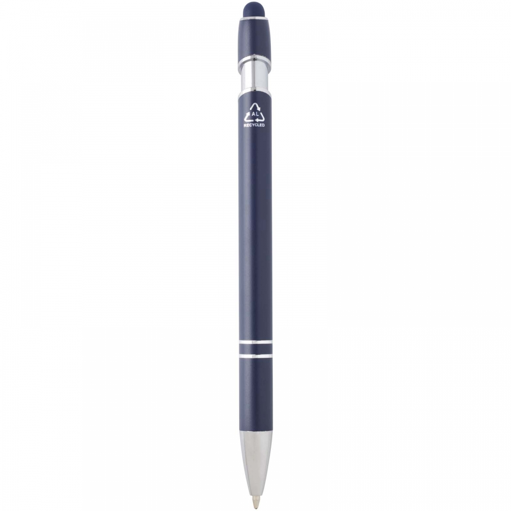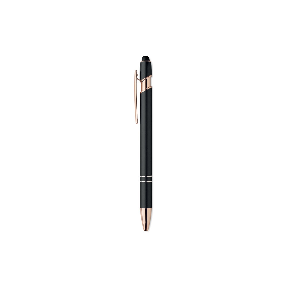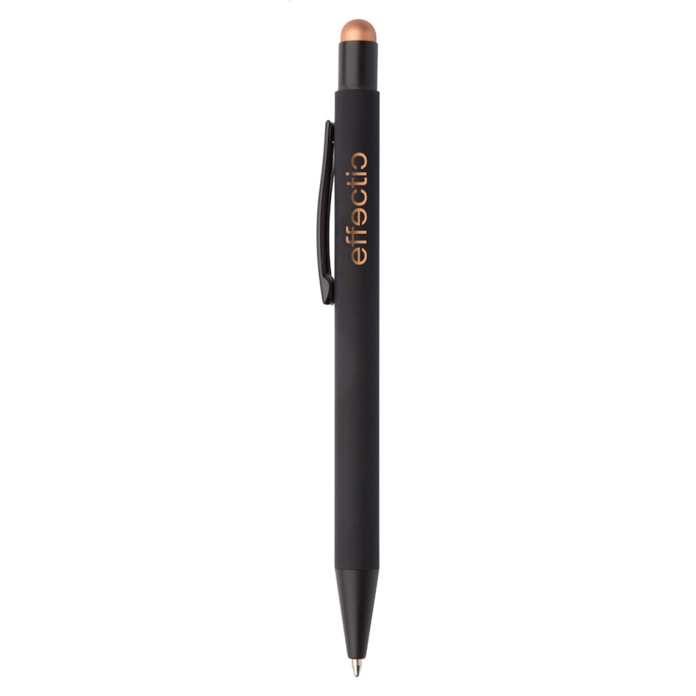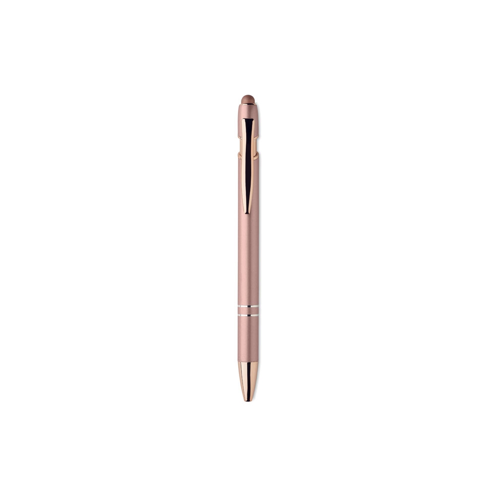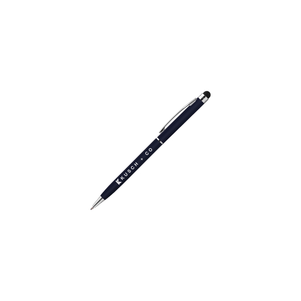 Artikel-Nr: ART87781N0061Kugelschreiber aus Aluminium mit elegantem Soft-Touch-Finish und Stylus. Mit massivem Metallclip. Schreibfarbe: blau.