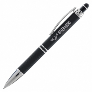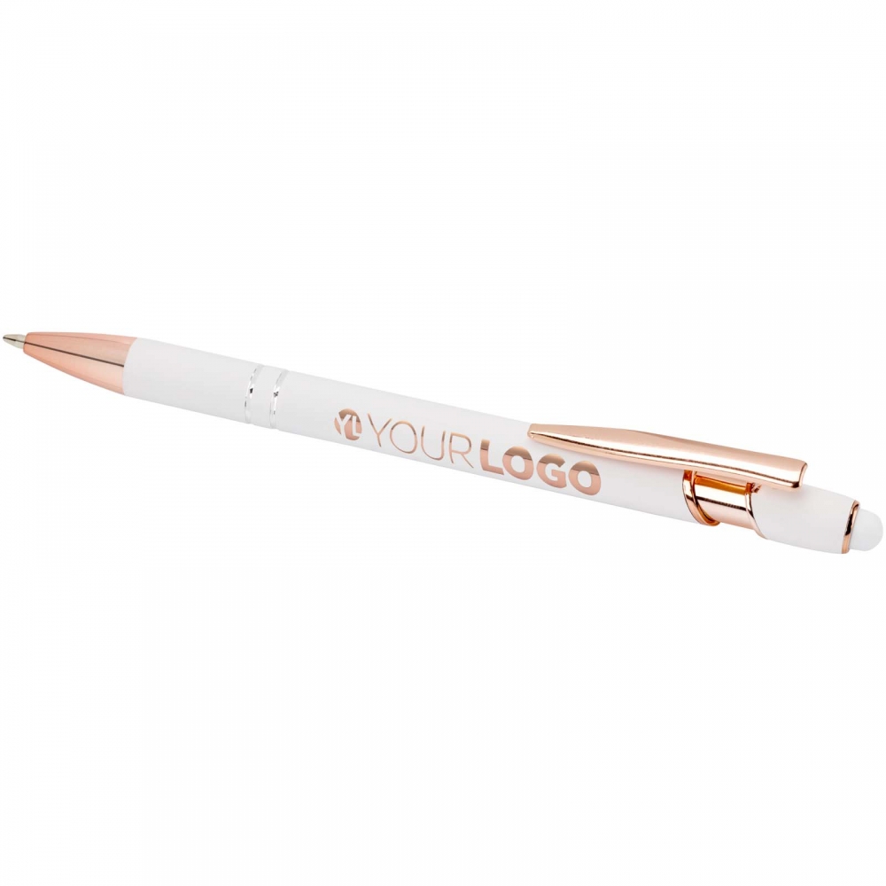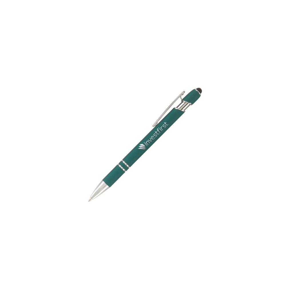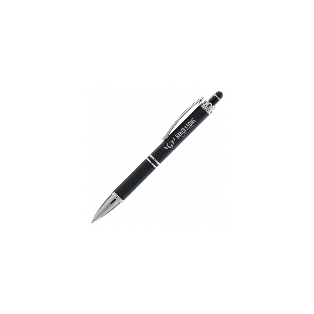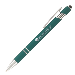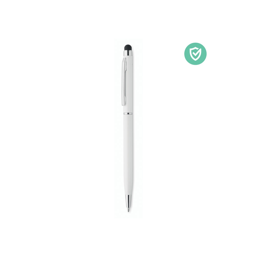 Artikel-Nr: ART87781N0061Kugelschreiber aus Aluminium mit elegantem Soft-Touch-Finish und Stylus. Mit massivem Metallclip. Schreibfarbe: blau.