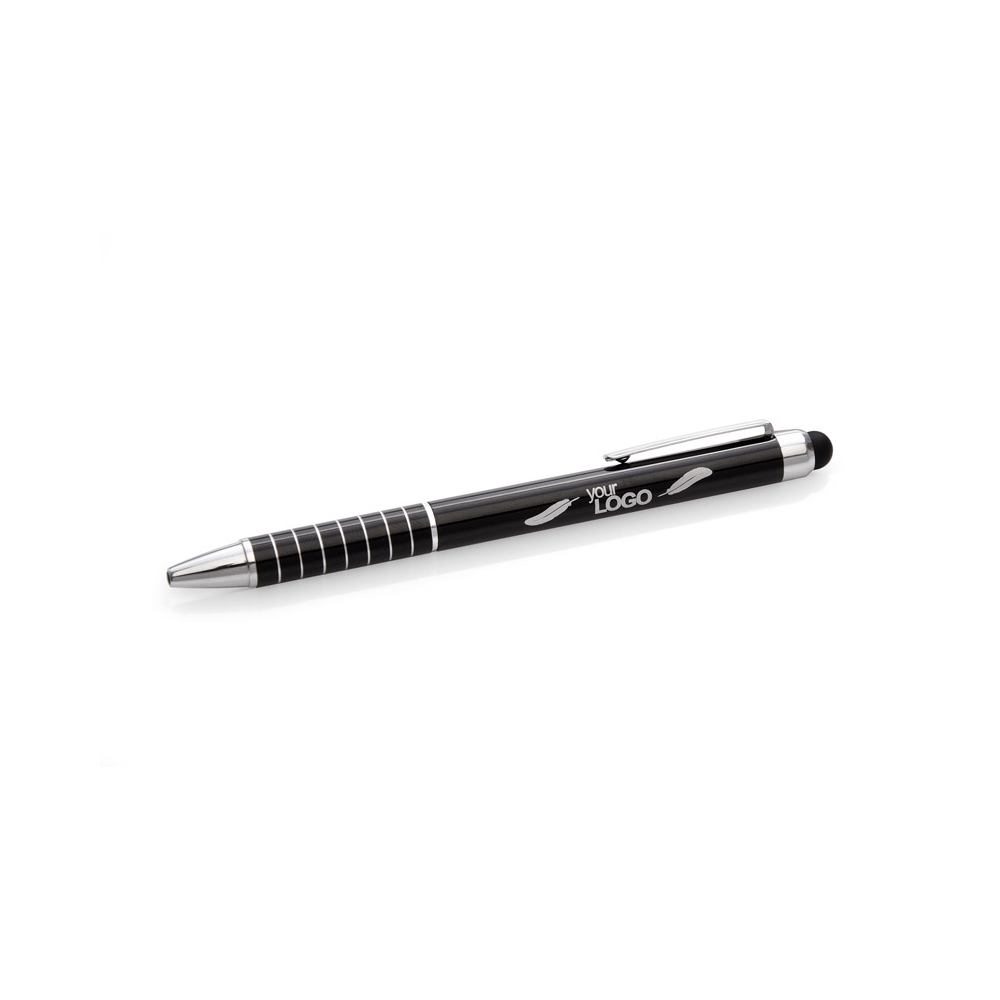 Artikel-Nr: EAG462411Schwarzer Aluminiumkugelschreiber mit griffigem Rubberfinish, blauschreibender Mine und Touchfunktion an der Spitze. Der schwarze Body wird durch eine farbige Touchgummierung in vielen Varianten ergänzt – ideal für Gravuren, welche hier in den passenden Farben zum Touchpen rauskommen und perfekt für den Alltag sind! Ihr Logo wird auf dem Schaft platziert.