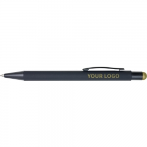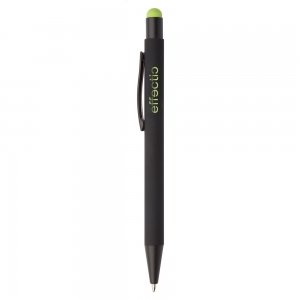 Artikel-Nr: GIV8477031Gummierter schwarzer Kugelschreiber 'Formentera' mit Touch-Funktion. Der Schaft ist unter der Oberfläche in der Farbe des Touchpens lackiert, sodass diese beim Lasern zum Vorschein kommt. Mit blauer Mine.