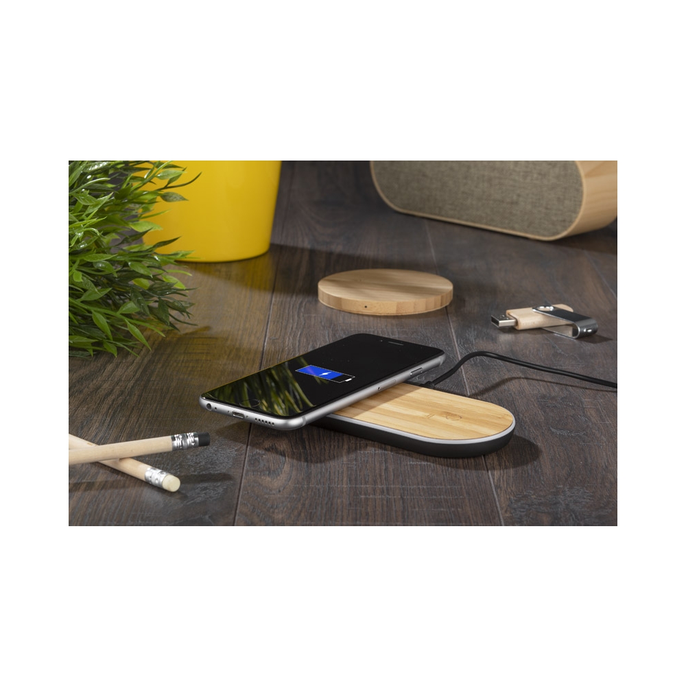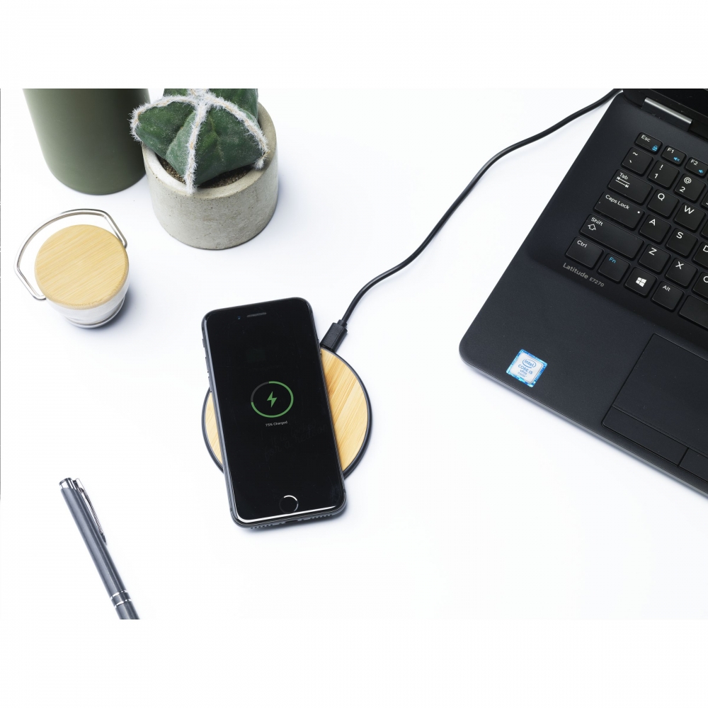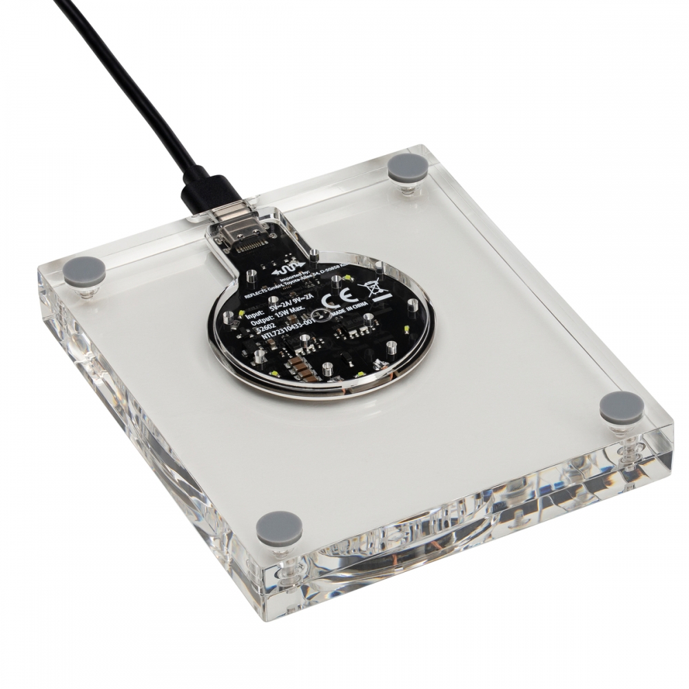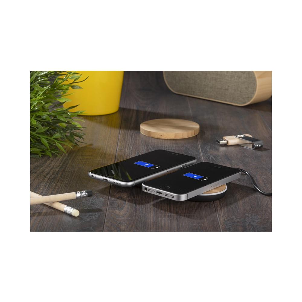 Artikel-Nr: KTO15324003000Zweifarbiges rundes kabelloses Ladegerät. Mit rutschfester Unterseite und LED-Anzeige für den Ladestatus. Kompatibel mit Smartphones mit kabelloser Ladetechnologie und präsentiert in einer attraktiven Designbox.