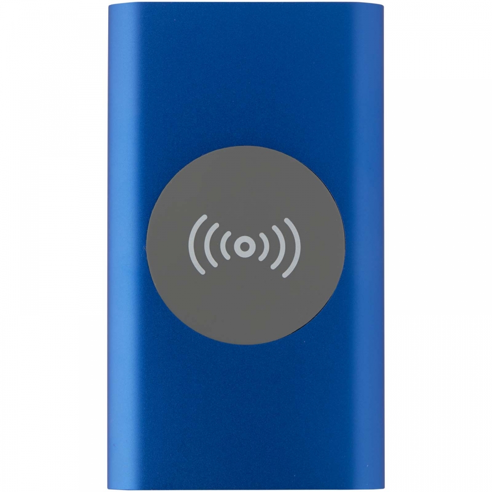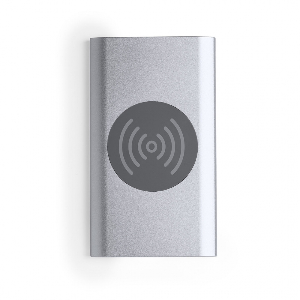USB Powerbank aus recyceltem Aluminium mit eingebautem Wireless-Fastcharger (15W), 4000 mAh Akku, 1 USB und 1 USB-C Ladeports und USB-C Eingangsport. Inkl. USB-Ladekabel.
