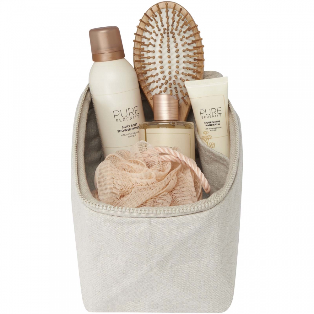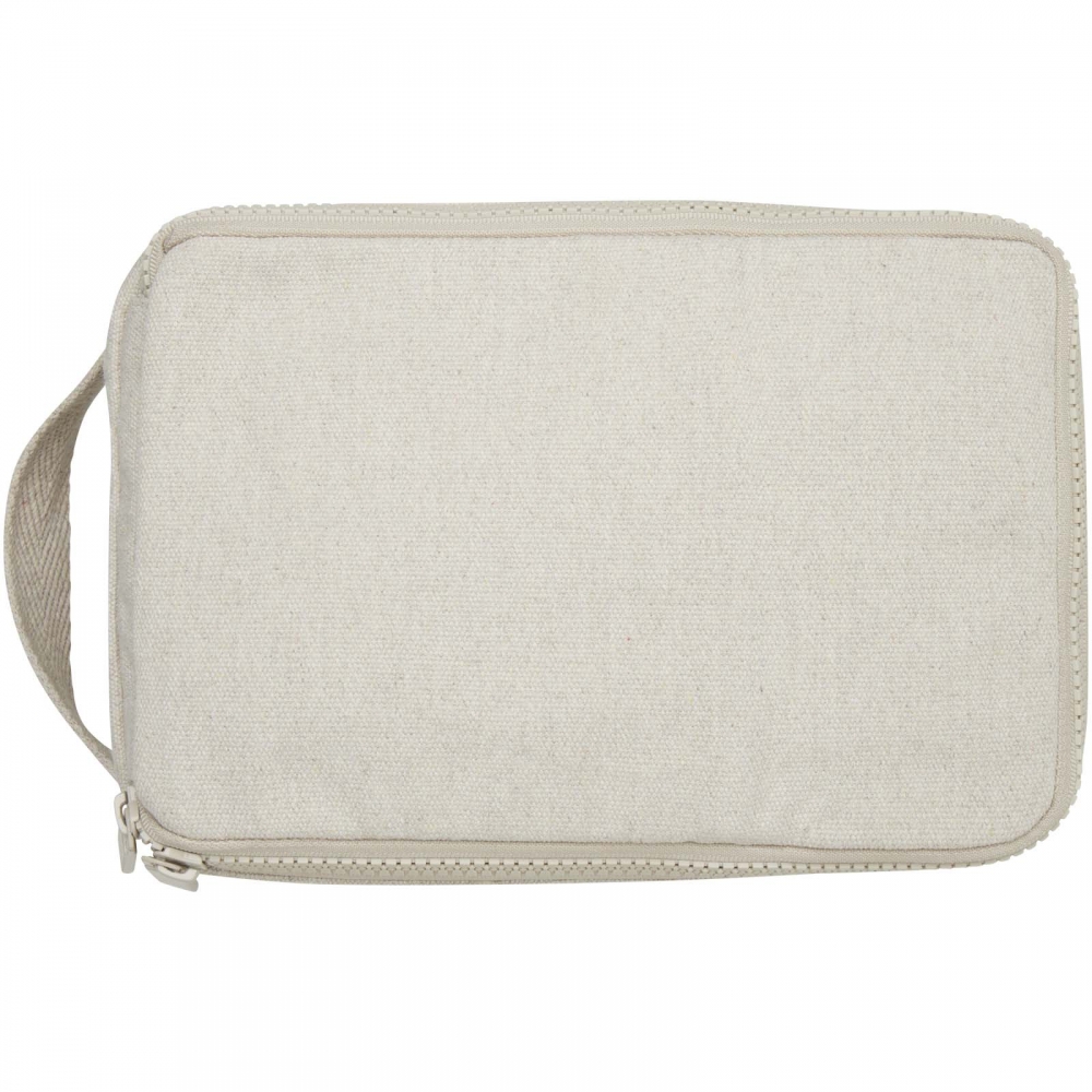 Kulturbeutel aus 500 g / m² Recyclingbaumwolle und recyceltem Polyester mit einem geräumigen Hauptfach mit Reißverschluss und mehreren Innentaschen. Das vielseitige Design eignet sich auch für kleine Gegenstände wie Socken oder Ladegeräte und sorgt für Ordnung im Gepäck. Die Tasche enthält Cyclo®-Recyclingfasern aus vorsortierten Abfällen, die die Farbe des Garns bestimmen. Diese Fasern verringern nicht nur den Bedarf an neuen Rohstoffen, sondern sind auch Ausdruck des Engagements für eine Kreislaufwirtschaft und verkörpern das Wesen der Abfallvermeidung und der Förderung eines g ...