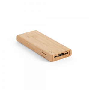 Powerbank aus Bambus mit 4000 mAh Akku. Die Powerbank kann über den Mikro-USB- und USB-C-Anschluss geladen werden. Inkl. USB-Ladekabel.