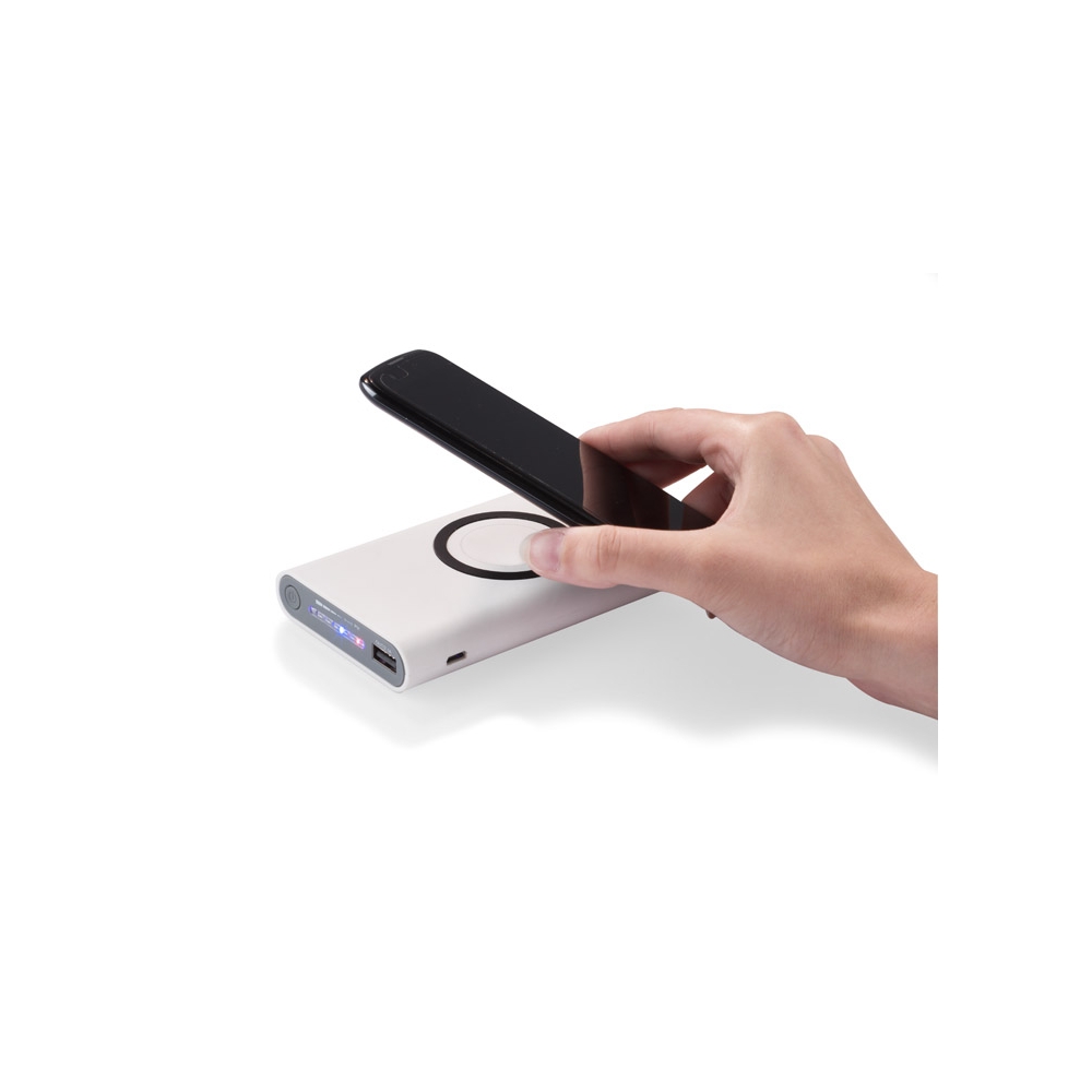 Artikel-Nr: XND322219Diese 8.000 mAh Powerbank mit integriertem Wireless-Charger hat ein Gehäuse aus Kork und Weizenstroh ( 35%) gemischt mit ABS. Die Ladung der Powerbank kann sowohl über Mirco-USB als auch Type-C erfolgen. Eine volle Ladung der 8.000 mAh Lithium-Polymer A-Grade Batterie kann Ihr Smartphone bis zu 4x aufladen. Mit Ladestandsanzeige. Kompatibel mit allen QI-fähigen Geräten wie den Androids der neuesten Generation sowie ab dem iPhone 8. Micro-USB Input: 5V/2A; Type-C Input: 5V/2A; USB Output 5V/2.1A; Wireless Output: 5W 5V/1A. Artikel und Accessoires 100% PVC-frei.