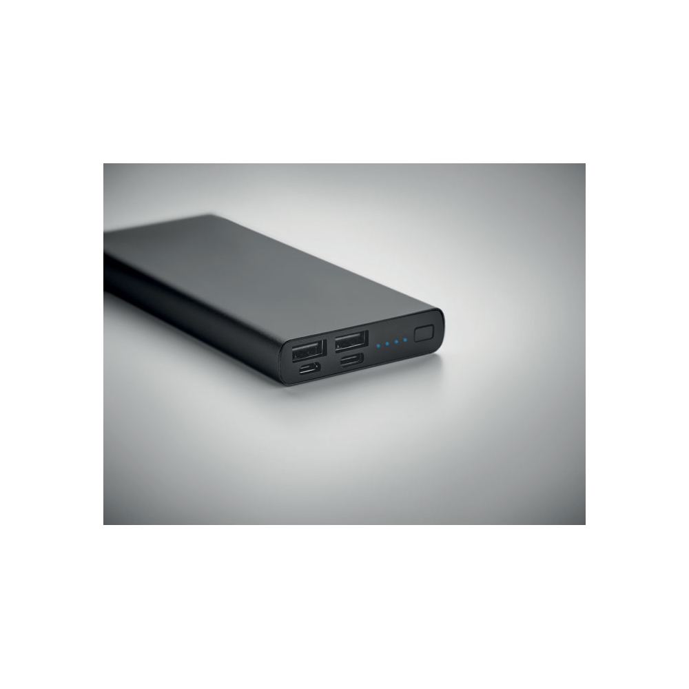 Powerbank 10000 mAh. Recyceltes Aluminiumgehäuse. Geeignet für den Betrieb von Smartphones. Ausgangsstrom DC5V/1A und DC5V/2A. Inkl. Leuchtanzeige und USB-Kabel mit Mikro-USB-Stecker. Unterstützt Schnellladetechnik (18W). Eingang / Ausgang: Typ-C. Power Delivery (PD)-Unterstützung zum Laden des neuesten Laptops MacPro®.