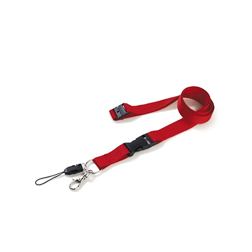 Lanyard aus Baumwolle mit Metallkarabiner, abnehmbarem Steckverschluss und Panikverschluss. 20 mm Breite.
