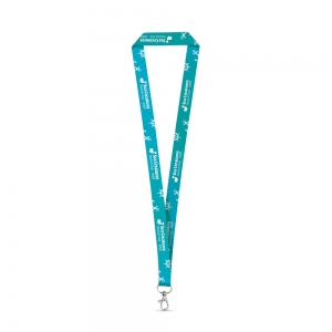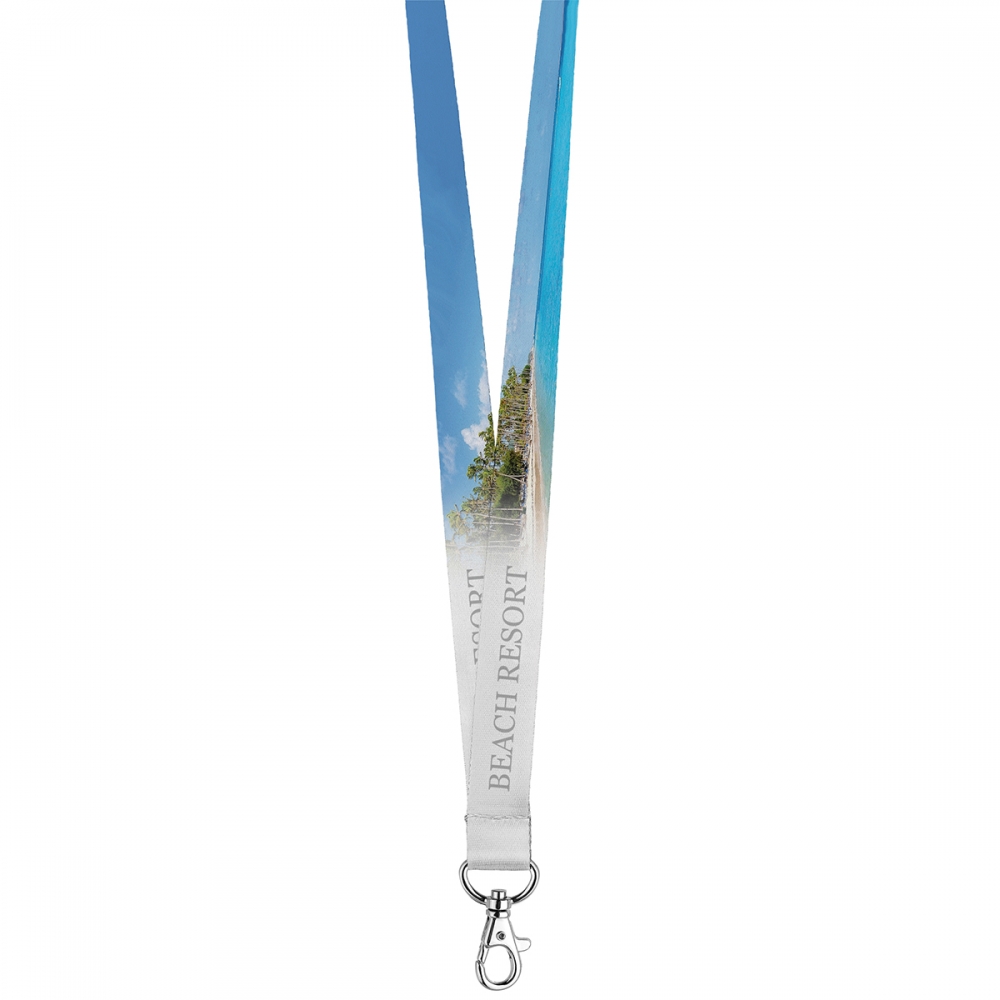 Lanyard von besonderer Breite aus resistentem, weichem Polyester mit Metallkarabiner. Speziell für die komplette Personalisierung mittels Sublimationsdruck entwickelt - für Bestellungen ab 250 Stück.