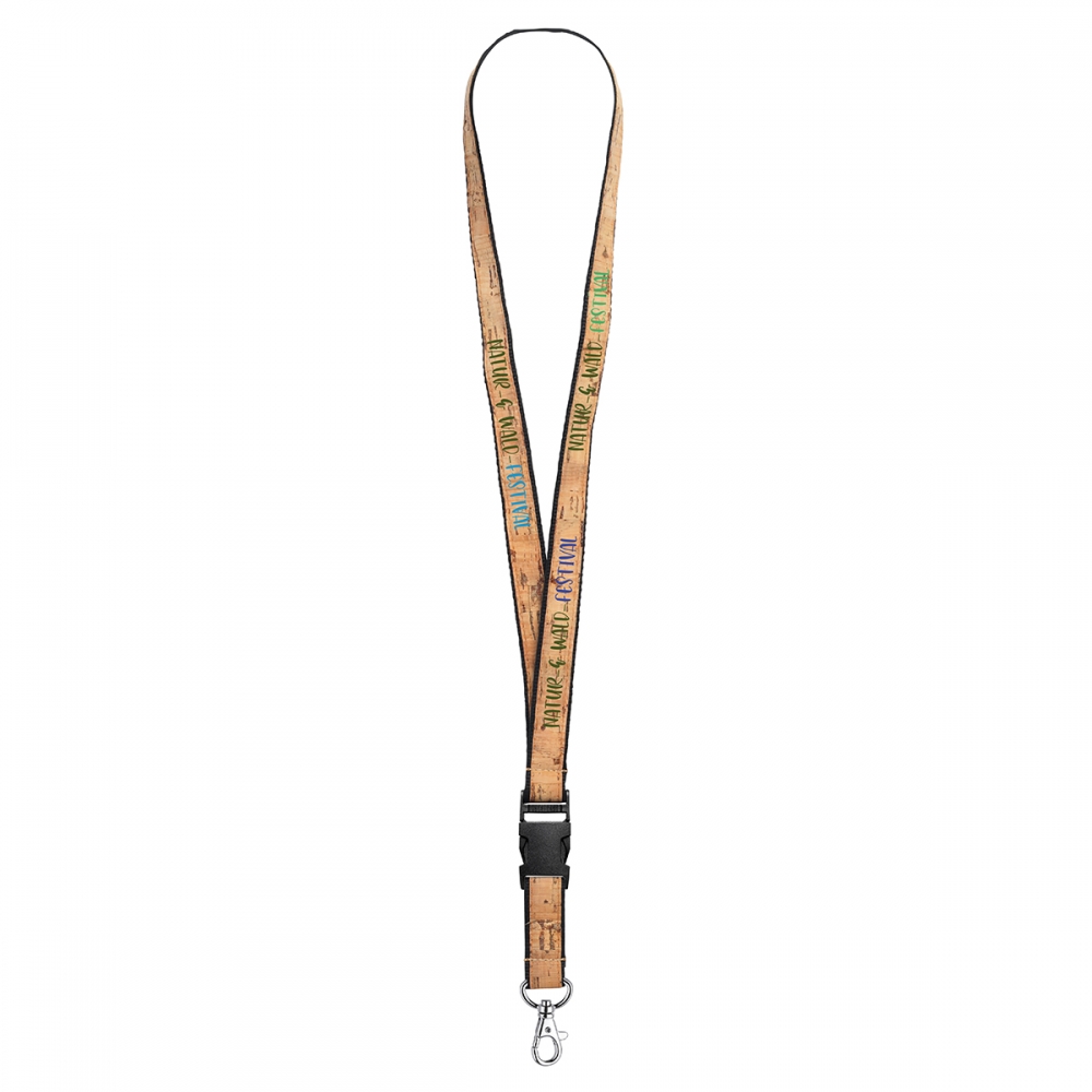 Schlüsselband / Lanyard "Kork" flachgewebtes Polyester mit Korkband mit Karabinerhaken und Schnappverschluss