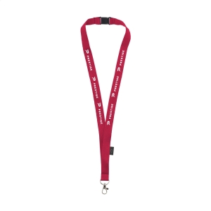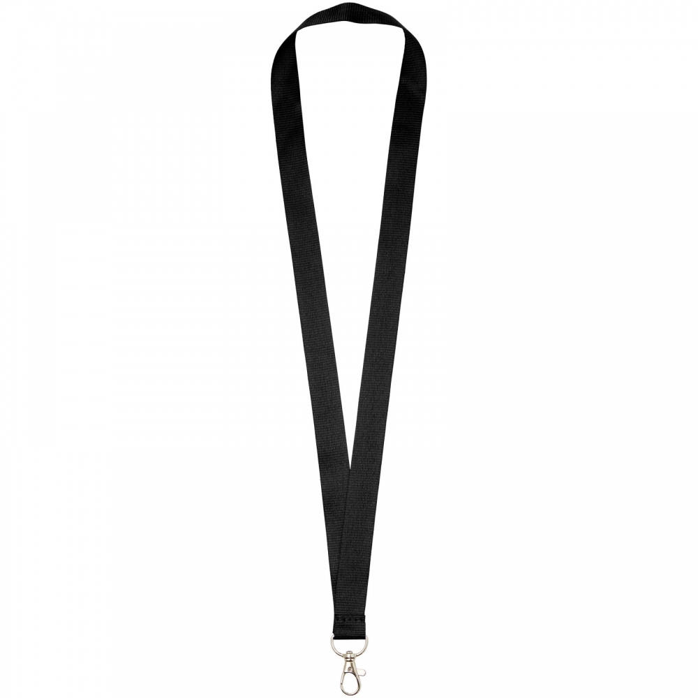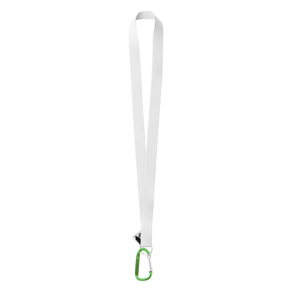 Lanyard aus 67 % GRS-zertifiziertem RPET-Polyester. Mit Karabinerhaken aus Metall.
