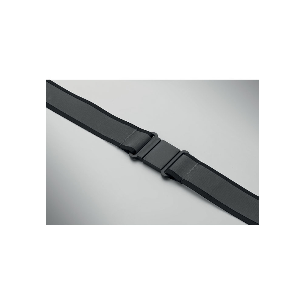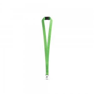Schlüsselband aus RPET-Polyester mit Metallkarabiner und Sicherheitsverschluß.