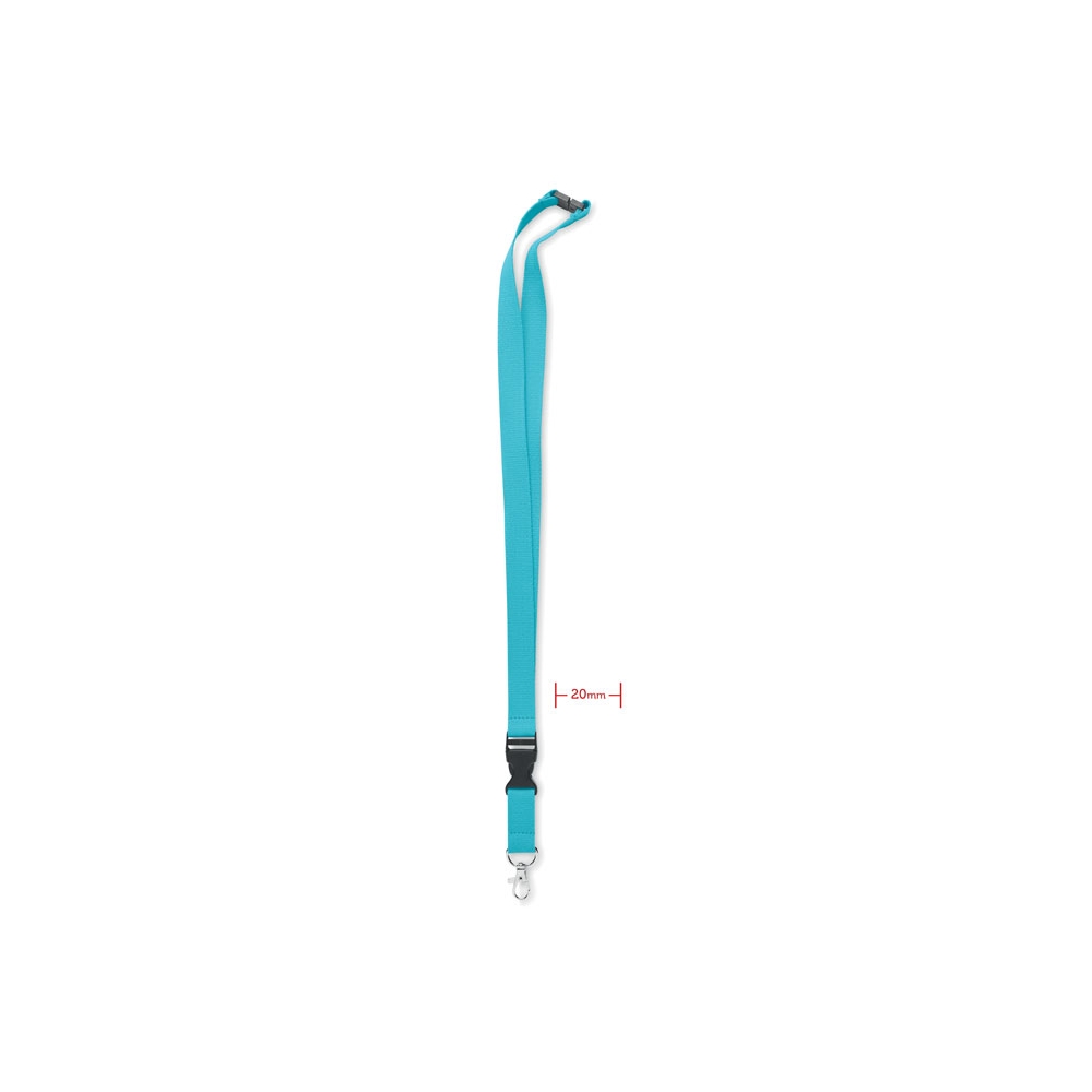 Lanyard aus Polyester (20 mm) mit einem Schlüsselband, einer abnehmbaren Schnalle und einen Sicherheitsverschluss, der vor Erstickungsgefahr schützt. 20 x 510 mm