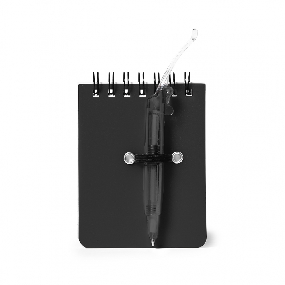 Mini-Ring-Notizbuch in auffälligen Farben mit Mini-Kugelschreiber auf dem Deckel und Lanyard mit farblich passendem abnehmbarem Detail. Erhältlich in 60 linierten Blätter.