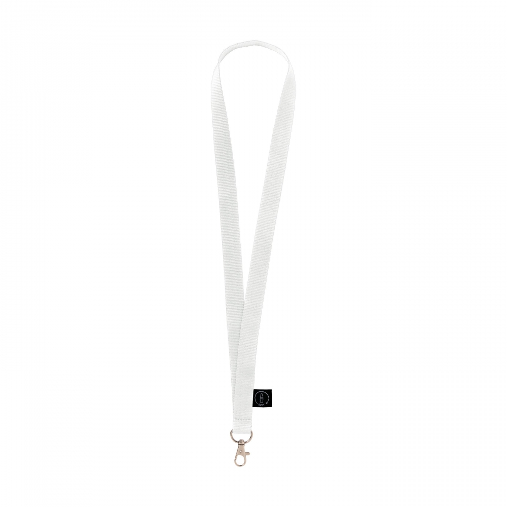 Lanyard aus RPET: aus recycelten PET-Flaschen hergestellt. Mit Metallkarabiner und Sicherheitsverschluss. GRS-zertifiziert. Gesamtes recyceltes Material: 58%.