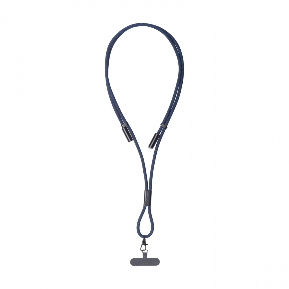 Lanyard 2-in-1-Ladekabel. Die Außenseite des Kabels besteht aus 100% recyceltem Polyester. Dieses Zubehör verfügt über ein integriertes USB-C-zu-USB-C-Kabel, das eine Daten- oder Ladeleistung von bis zu 60W unterstützt. Verstellbare Länge für maximalen Tragekomfort um den Hals oder über der Schulter. Mit Metallhaken, D-Ring, verstellbaren Aluminiumschlaufen und TPU-Mobilfunkaufsatz (6 x 2,7 x 1 cm). Ihr Telefon lässt sich leicht befestigen. Ein trendiges Must-Have für alle, die Stil und Komfort verbinden möchten. Auch für Apple CarPlay geeignet. GRS-zertifiziert.