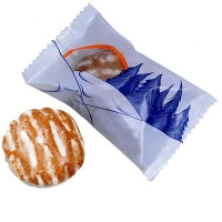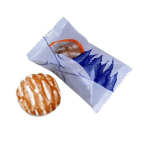 Lebkuchenmännchen aus braunem Lebkuchen, in glänzend- oder matt-kaschiertem transparentem alternativ weißem Flowpack einzeln verpackt. Bruch einzelner Kekse möglich.