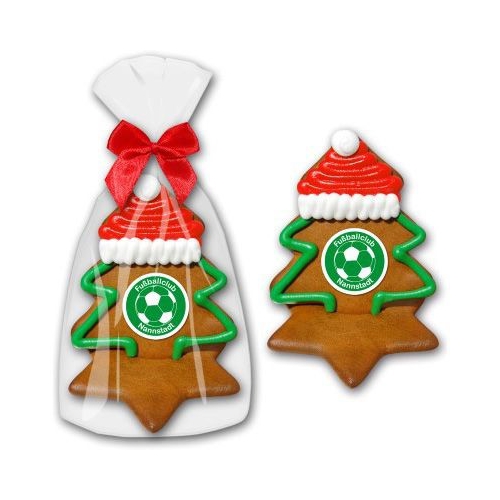 Aus feinstem Honiglebkuchen und mit farbig bedrucktem Marzipan - Fondantlogo versehen. Gewicht: ca. 92g Verpackung: Einzeln im Glanzbeutel mit roter oder weißer Satinschleife aufgebunden. Haltbarkeit: 3 Monate