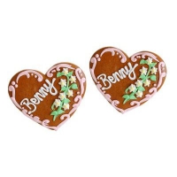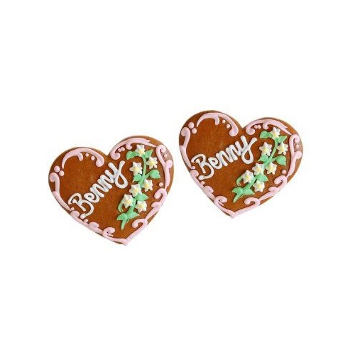 Filigran ausdekorierte Lebkuchenherzen aus Honiglebkuchenteig. Dekoration und Farben richten wir nach Kundenwunsch. Größe: ca. 7 cm, Gewicht: ca. 15 g Verpackung: Einzeln in Glanzbeutel aufgebunden. Haltbarkeit: 6 Monate