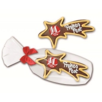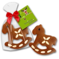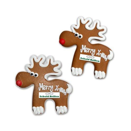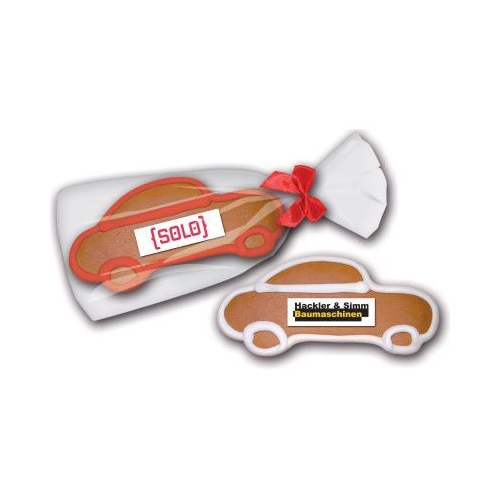 Feinster Lebkuchen in Sonderform mit vollfarbig bedrucktem Marzipan. Auf bedruckter Karte in Folie verpackt. Maße: ca. 10 x 7 cm (oder nach Kundenwunsch) Gewicht: ca. 45 g Haltbarkeit: 6 Monate