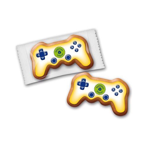 Mit Zuckerguss von Hand verziert und mit farbig bedrucktem Marzipan-Fondantlogo versehen. Gewicht: ca. 35g Verpackung: Einzen in Glanzfolie per Flowpack verpackt. Haltbarkeit: 3 Monate