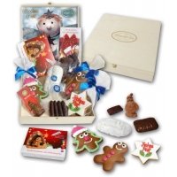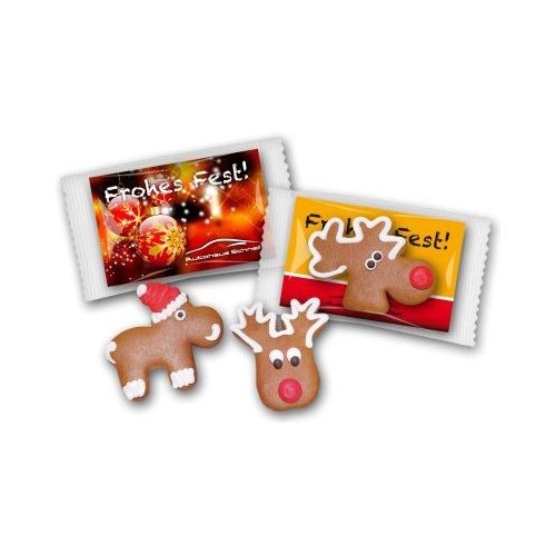 Verpackung: Lebkuchenmann, Zuckergussstube, Lolly und Fruchtgummi werden in bedrucktem Karton verpackt.