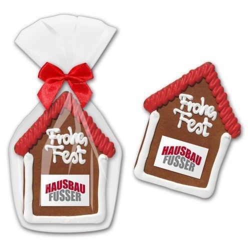 Artikel-Nr: D567502Feinster Lebkuchen, mit Zuckerguss von Hand verziert und einem Marzipanschild auf einer Dachhälfte aufgebracht.