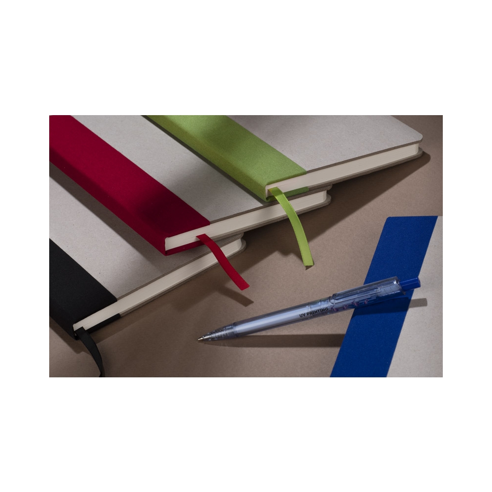 Artikel-Nr: KTO20946004000Notizbuch mit hartem Einband aus RPET 600D. Mit leeren Vorder- und Rückseiten und 100 unbedruckten Innenblättern. Gummiband und Lesezeichen in einer Auswahl von leuchtenden Farben und speziell für den Sublimationsdruck rundum entworfen. Mit RPET-Logo auf der hinteren Umschlagseite und in einer individuellen Tasche präsentiert. Das RPET-Material wird aus recyceltem Kunststoff hergestellt, wodurch die Wiederverwendung von Kunststoffabfällen gefördert und ein Beitrag zur Nachhaltigkeit unseres Planeten geleistet wird.