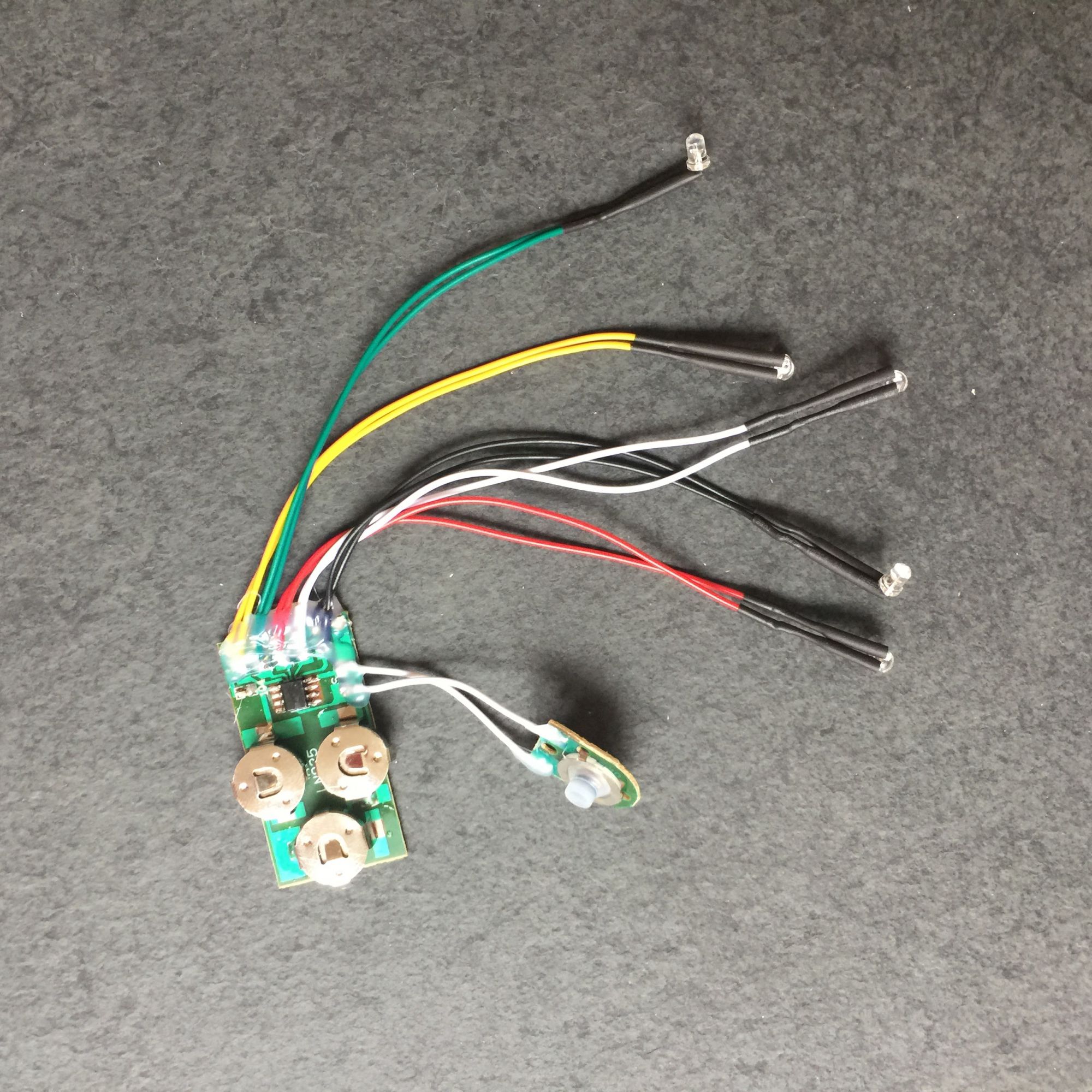 Dragee-Bonbon in Medikamentenverpackung und Soundmodul mit Lichtauslöser