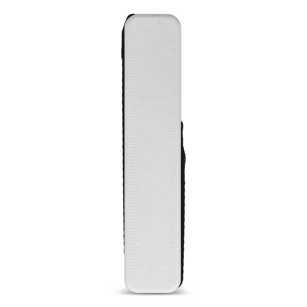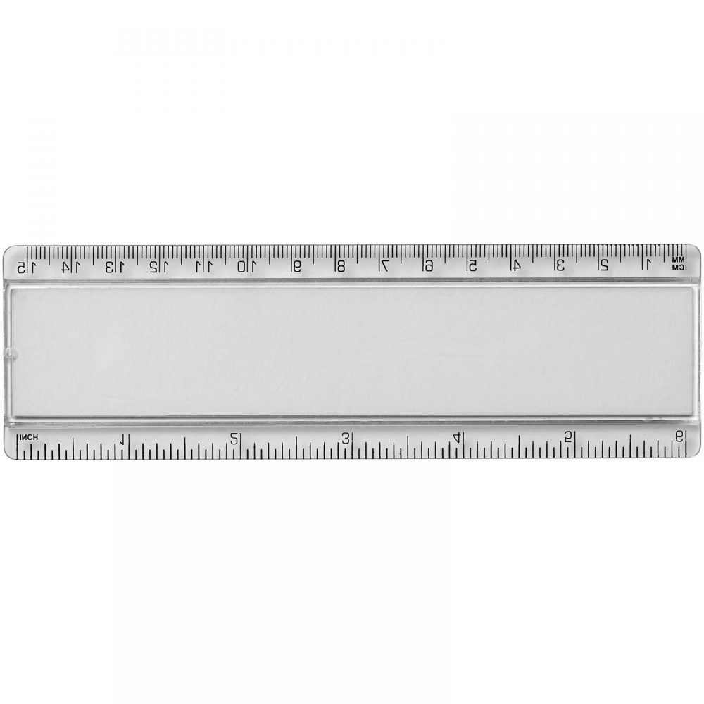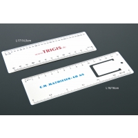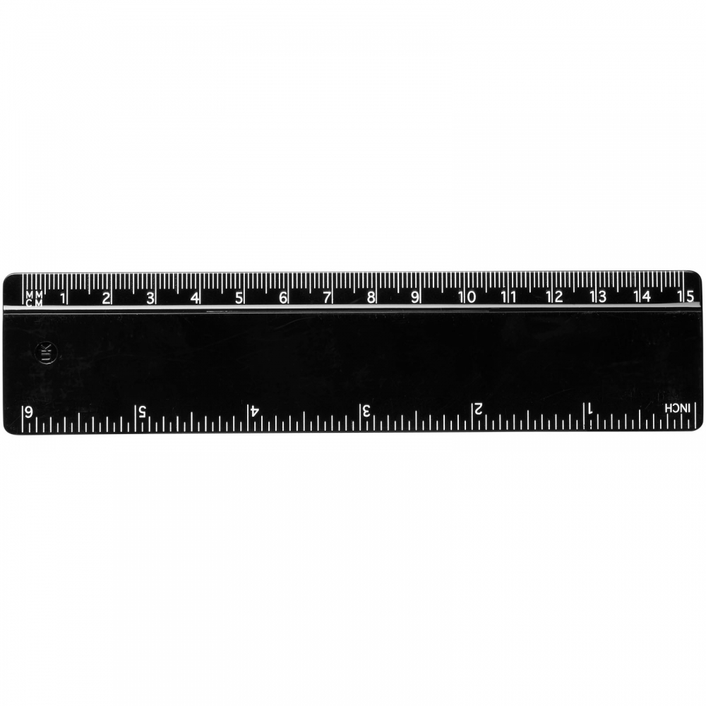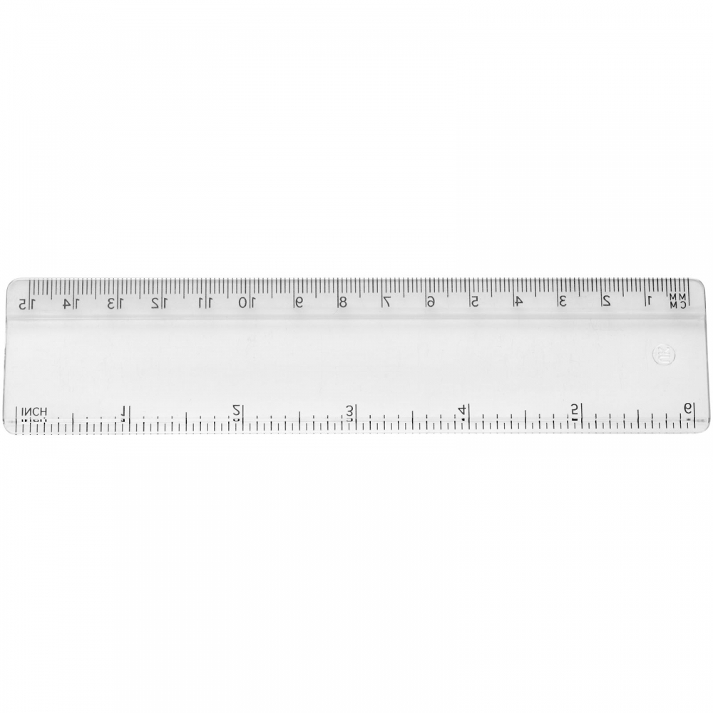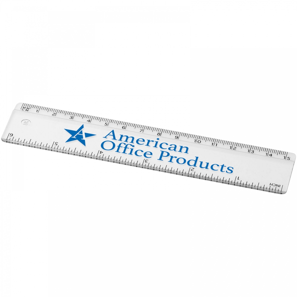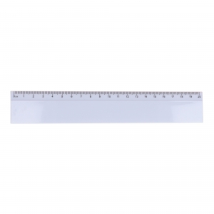 Stabiles Plastiklineal. Markierungen in Zoll und Zentimeter. Bitte beachten Sie, dass die Linealmarkierungen zusammen mit Ihrer Druckvorlage aufgedruckt werden, unveredelte Lineale haben keine Markierungen und sind blank.