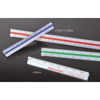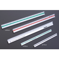Aluminium-Dreikantlineal 20cm in silber mit 2 eingelassenen, gummierten Farbstreifen zur besseren Unterscheidung der Seiten.5 Wunschskalierungen gem. Tabelle auswählbar.