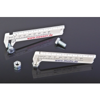 Preisgünstige Schieblehre aus glasfaserverstärktem Polyamid. Für Außenmessungen von Schrauben, Kabeln etc. und Innenmessungen wie z. B. Schraubmuttern und Spaltmasse. Abgeschrägte Außenseite mit schwarzer Skalierung als Lineal verwendbar. Alle Skalierungen sind tiefgeprägt und damit abriebresistent.