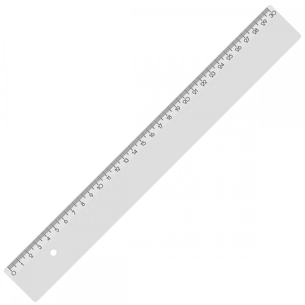 Lineal 30 cm mit gedruckter Skala auf schräg abfallender Fläche und Tuschkante